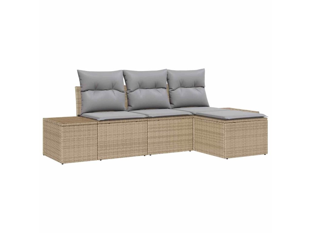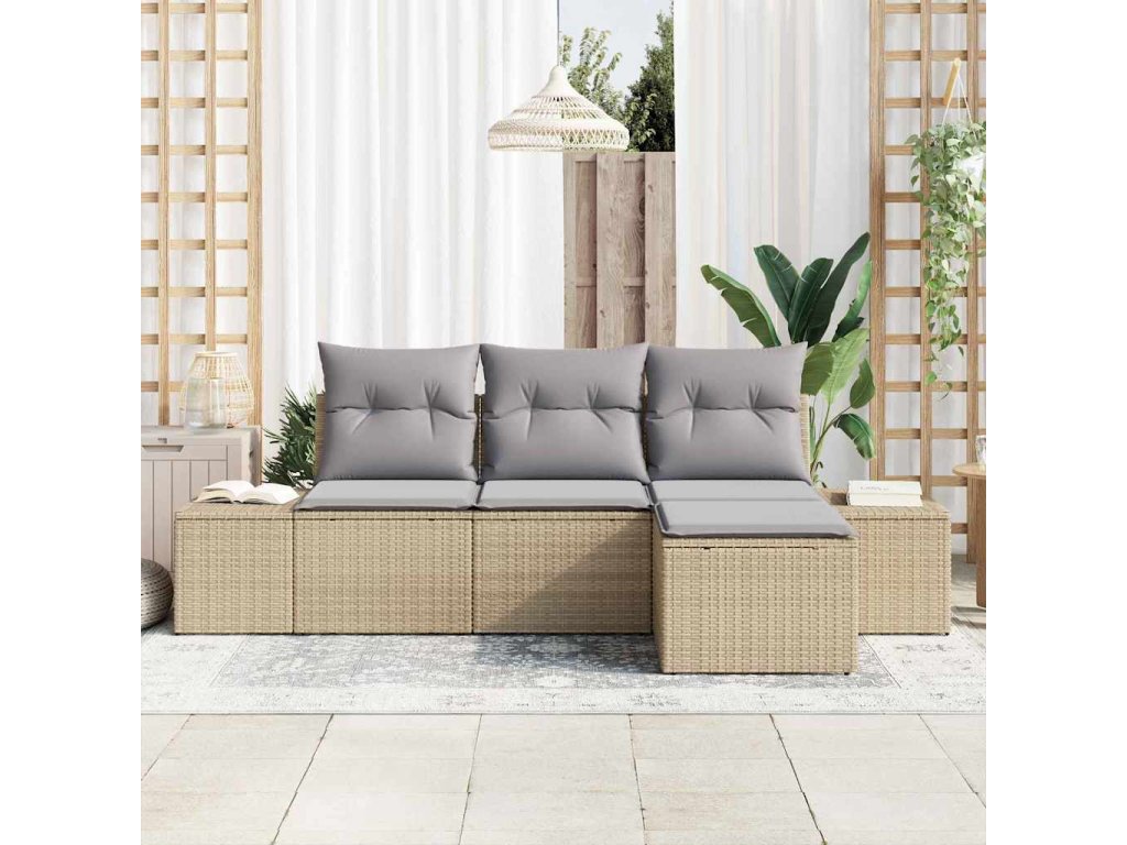 - Odolné materiály: Vyrobená z kvalitního ratanu a látky, tato pohovka odolává povětrnostním podmínkám.