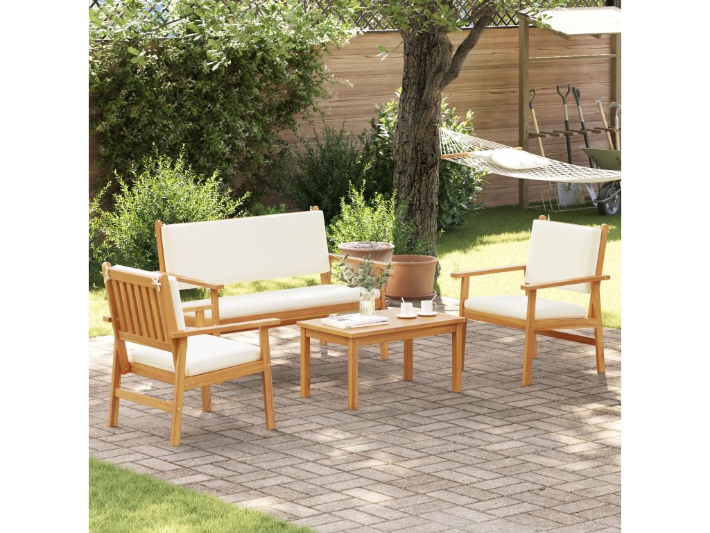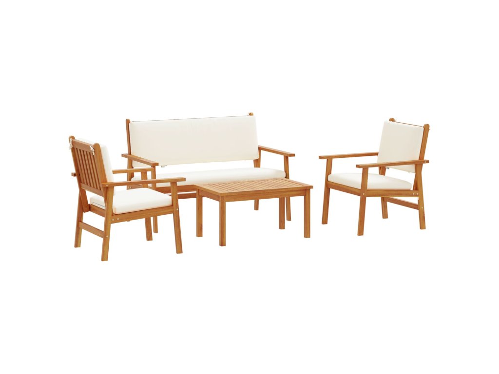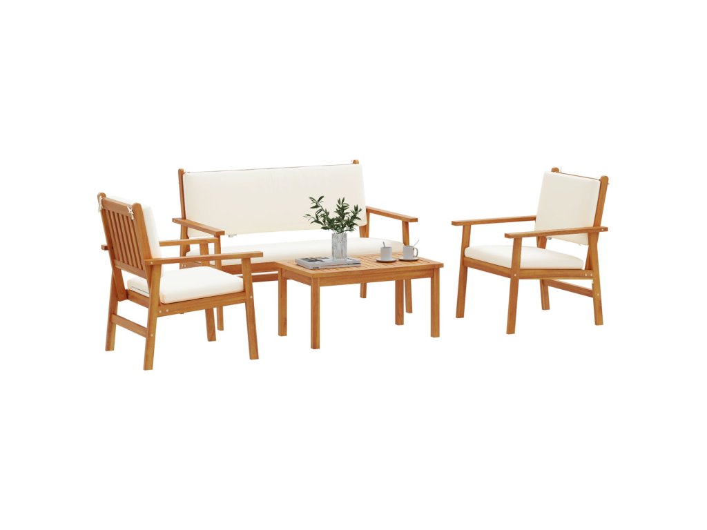 Tato rustikální akáciová venkovní sedačka je skvělý doplněk pro terasu nebo balkon, spojující přirozený vzhled s praktickým designem. Obsahuje lavici, dvě pohodlné židle a konferenční stolek, všechno vyrobené z masivního akáciového dřeva pro odolnost a styl.