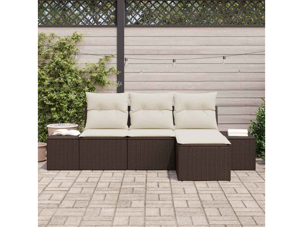 Tento venkovní rohový pohovkový set vypadá parádně a nabízí pohodlné sezení pro 4, takže je ideální pro každou venkovní oblast. Je z odolného syntetického poly ratanu v hezkých hnědých a bílých kombinacích, které se hodí k tvé terase a poskytují ti pohodlné místo na relaxaci nebo povídání s hosty.