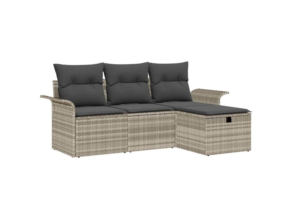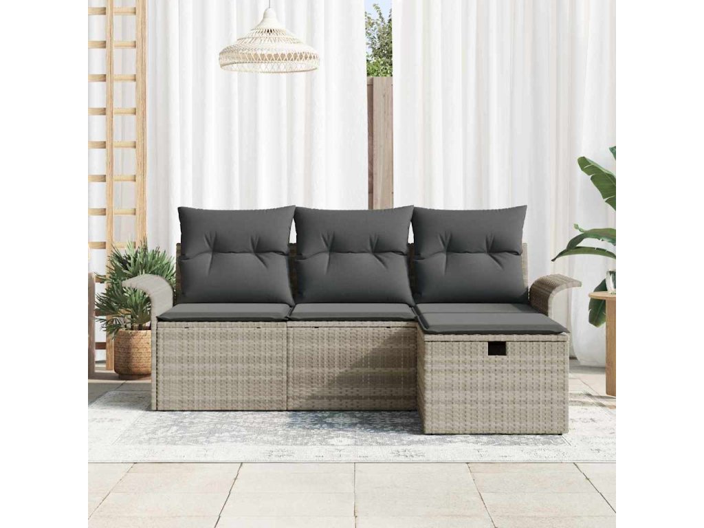 Tato venkovní sekční pohovka spojuje styl a funkci. Skvělá na odpočinek v každé zahradě nebo na terase. S pohodlnými sedacími polštáři z odolného polyesteru a trendy světle šedou barvou poskytuje tento set ideální místo pro setkání nebo relaxaci pod hvězdami.