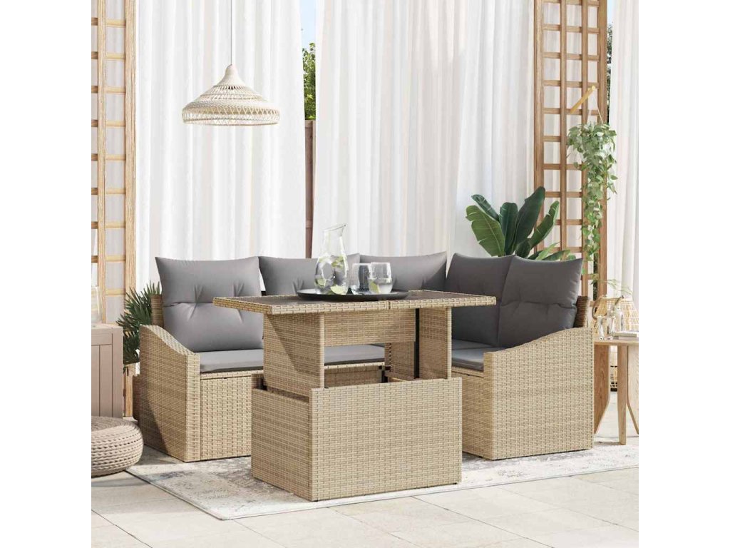 Sada zahradních pohovek s polštáři z poly ratanového materiálu je luxusním venkovním sezením pro ty, kteří chtějí pozvednout svou zahradu, terasu nebo venkovní prostor. Tento moderní design se vyznačuje jednoduchostí a funkčností, s čistými liniemi a minimálním zdobením. Je navržena pro socializaci, odpočinek nebo užívání si klidného venkovního prostředí, které poskytuje klidnou atmosféru s tkanou texturou, která se bez problémů snoubí s přírodou.