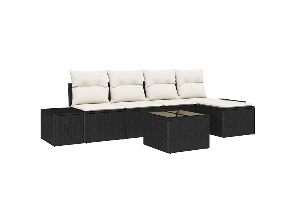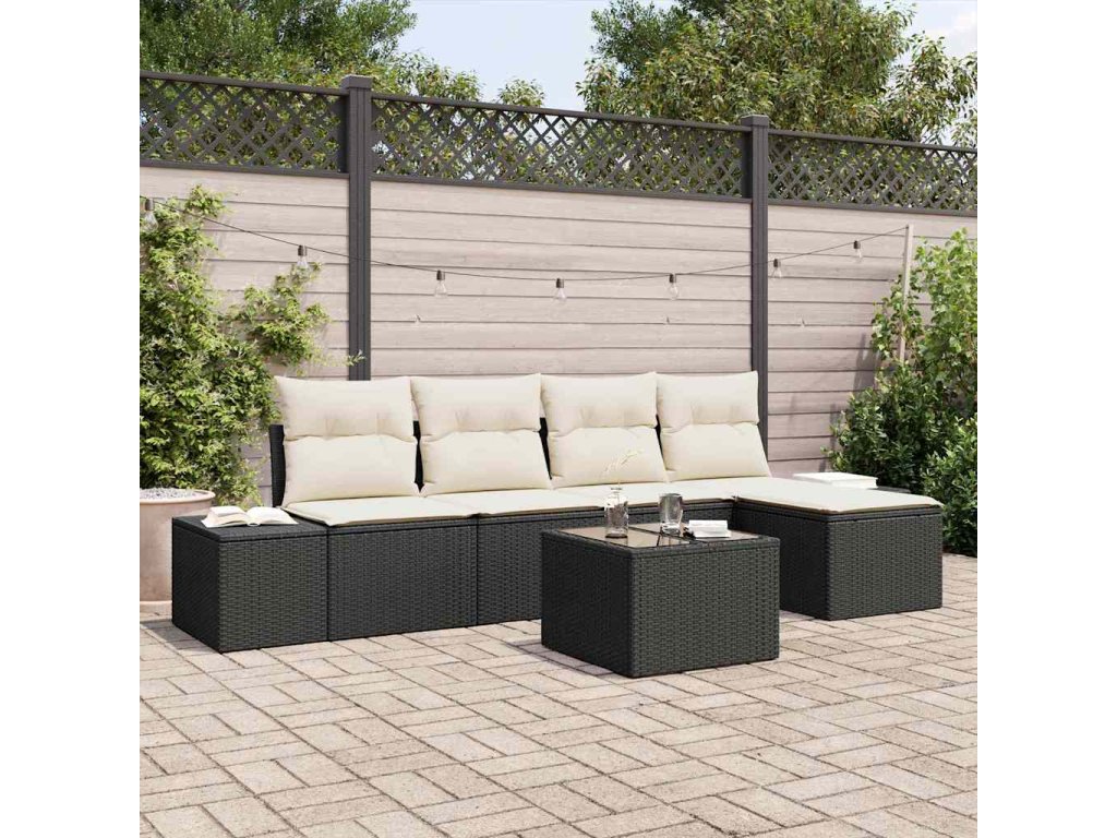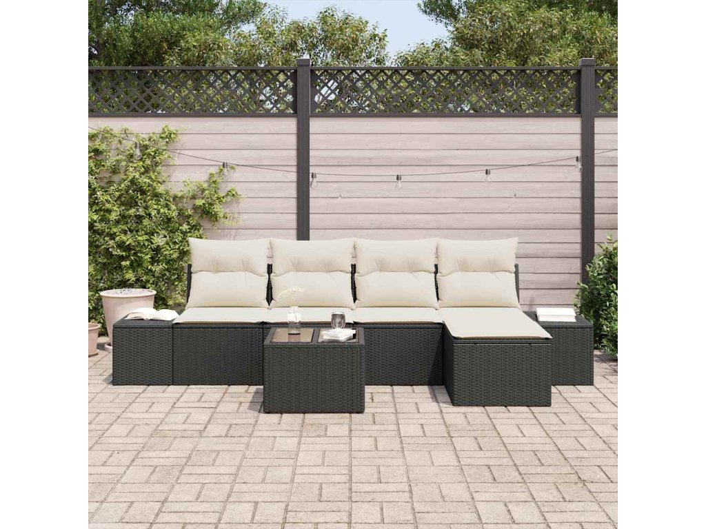 Tato venkovní sekční pohovka spojuje styl a pohodlí, dodává tvému balkonu krásný vzhled. Vyrobená z odolného černého a bílého poly ratanu s pohodlnými polyesterovými polštáři, dává tvému venkovnímu prostoru zónu klidu, ideální na setkání nebo klidné večery pod hvězdami.