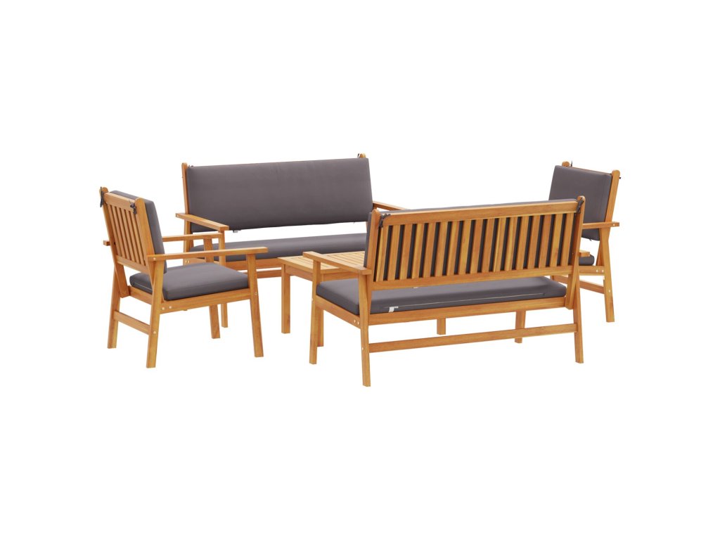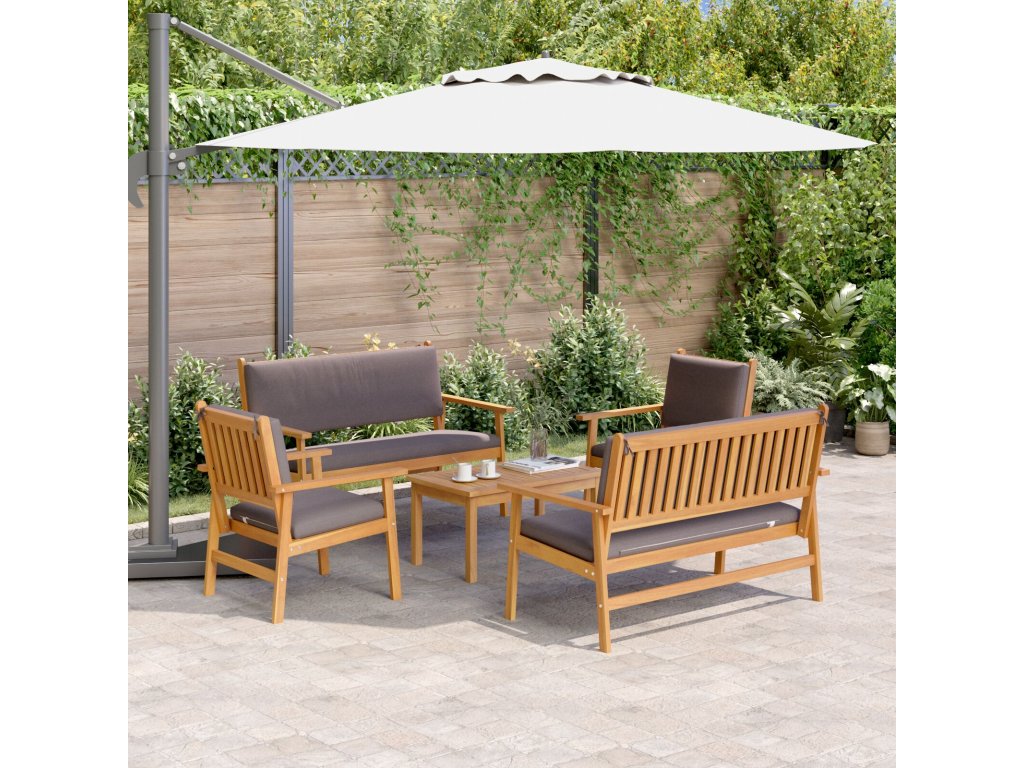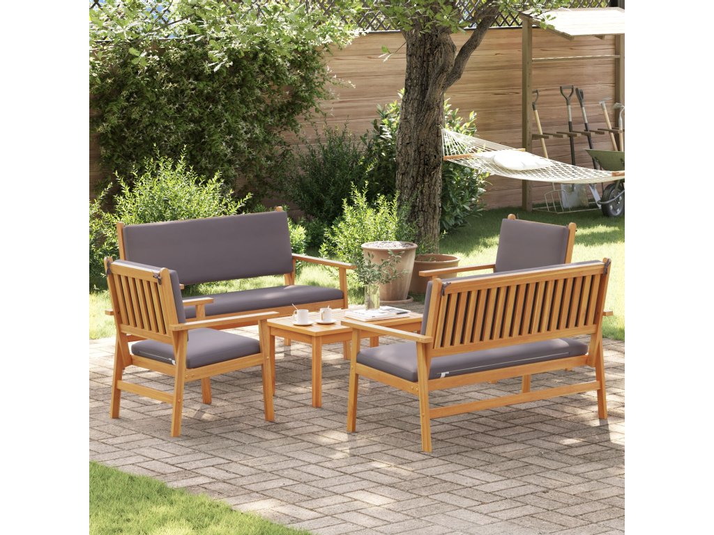 Tato moderní sada zahradního nábytku z akátového dřeva nabízí skvělou kombinaci lavic, židlí a konferenčního stolku a vytváří příjemný venkovní prostor pro setkávání. Přirozený dřevěný povrch a moderní design dodávají vaší zahradě, balkonu nebo zimní zahradě rustikální nádech, ideální pro relaxaci ve stylu a pohodlí.