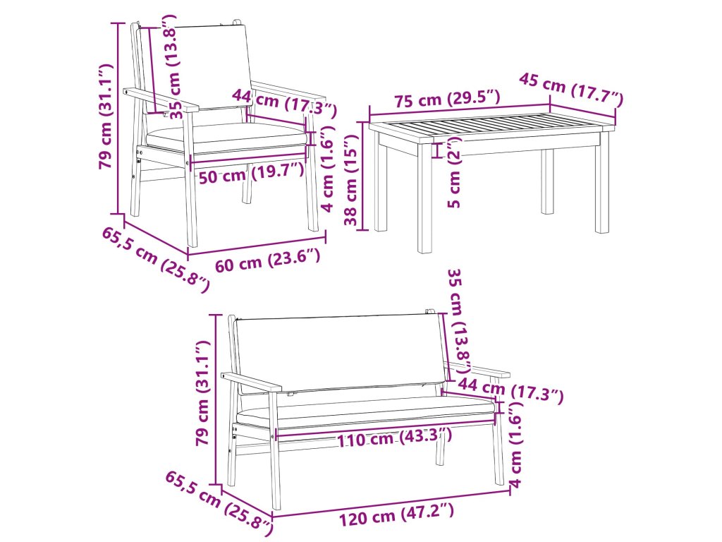 Tato venkovní sada pohovek má stylový design, který opravdu pozvedne atmosféru venkovních ploch. Perfektní pro pohodové balkony nebo zábavná setkání. Vyrábí se z masivního akáciového dřeva s krásným přírodním olejovaným povrchem. Vypadá skvěle a nabízí pohodlné polstrování pro rodinu a přátele.