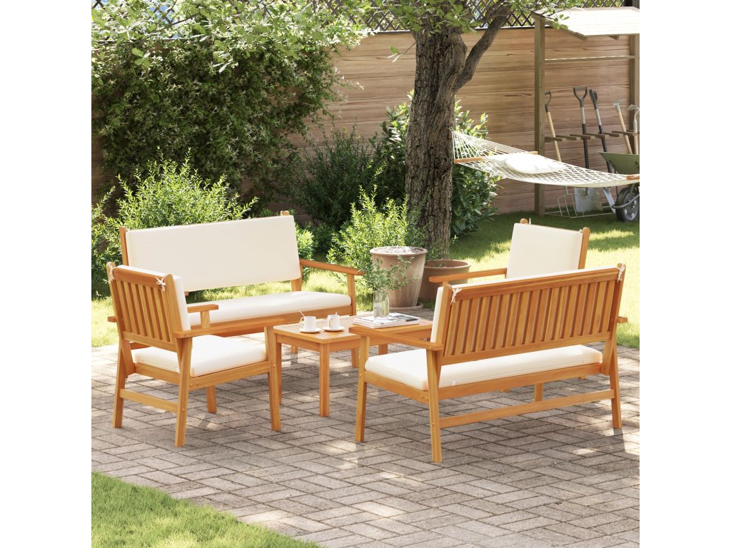 - Odolné materiály: Vyrobené z masivního akáciového dřeva, toto sezení zvládne různá počasí a vypadá skvěle. Olejový povrch chrání proti vlhkosti a ukazuje přirozenou krásu dřeva.