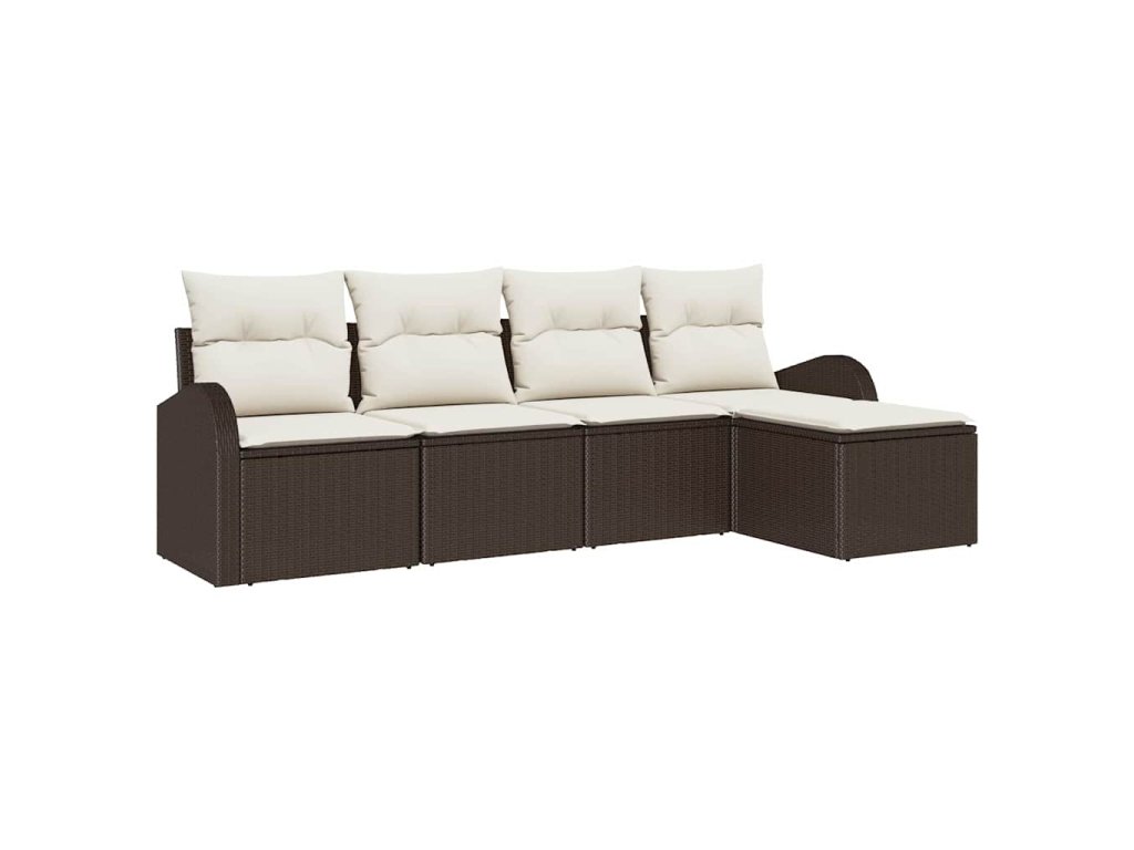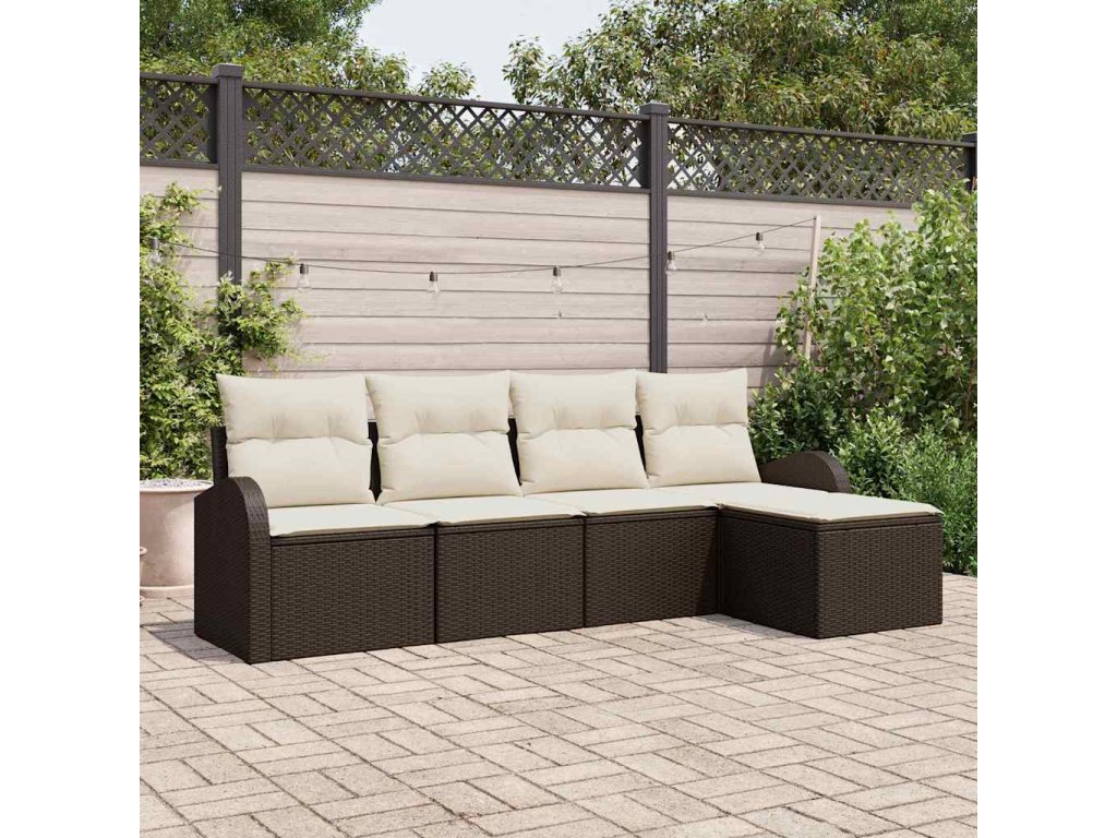 Tato sada zahradních pohovek mění venkovní lenošení, spojuje styl a pohodlí s kvalitním zpracováním v hladkém hnědém polyratanovém designu. Skvěle se hodí na balkony, terasy nebo zahrady, nabízí dostatek místa pro až pět lidí, aby si užili příjemné chvíle s přáteli nebo rodinou.