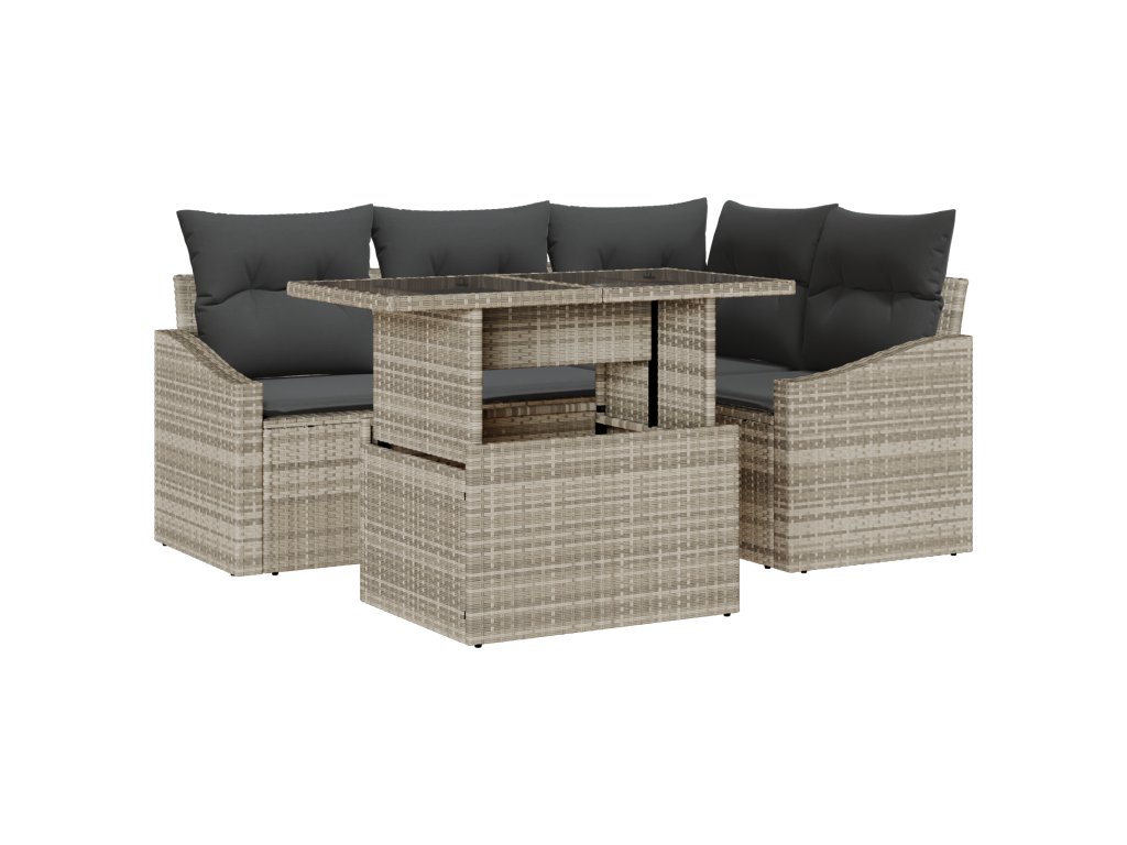 Tato 5-dílná zahradní pohovka spojuje styl a užitečnost, ideální pro venkovní večírky a relax. Vyrobeno z přírodního ratanu, tohle je odolné vůči počasí, což se hodí na balkony, zahrady a terasy. Užijte si pohodlí a styl.