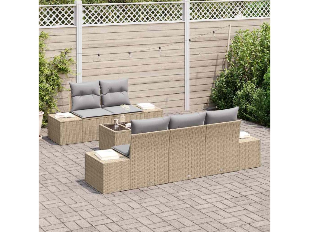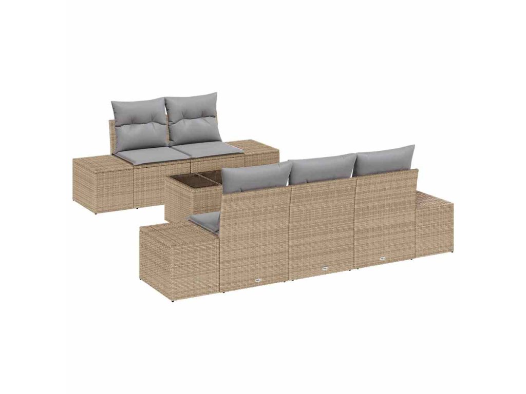 Tahle vidaXL 6dílná zahradní pohovková souprava je fajn mix stylu a pohodlí, ideální pro venkovní setkání. Vyrobeno z odolného poly ratanu, skvěle to vypadá a nabízí dost místa pro tvoje kamarády během sezení, lenošení nebo večerů pod hvězdami.