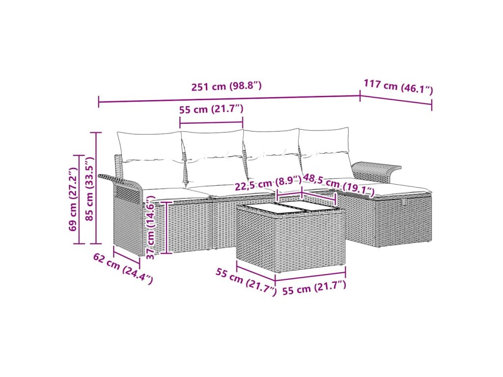 - Úložná funkčnost: Tato sada má skrytý úložný prostor na několika místech, takže polštáře a drobnosti lze schovat, když je nepotřebujete. Udržujte svůj venkovní prostor uklizený, aniž byste se vzdávali stylu.