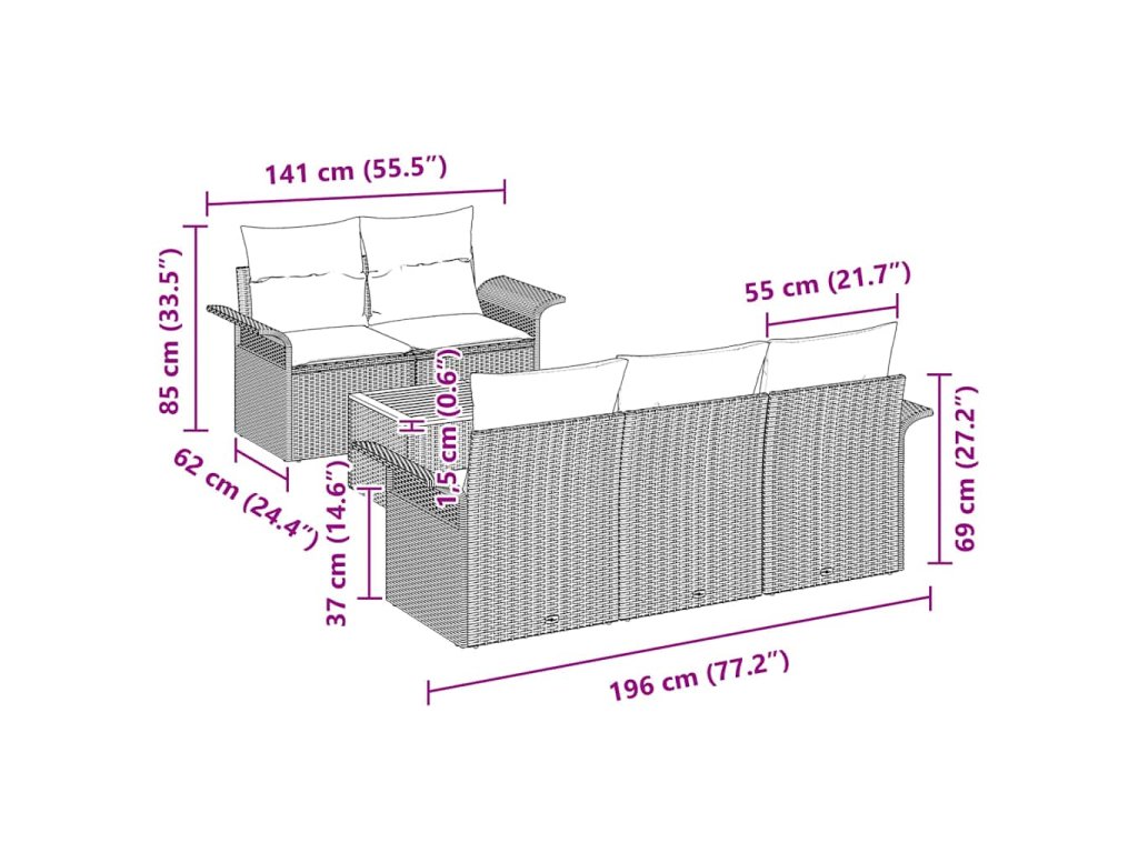 Tato sada zahradních pohovek dodává stylový nádech vašim venkovním prostorám, ideální pro užívání teplých večerů s rodinou a přáteli. S moderním designem skvěle ladí jak funkčnosti, tak vzhledu, což z ní dělá skvělou volbu pro balkony, zahrady nebo terasy.