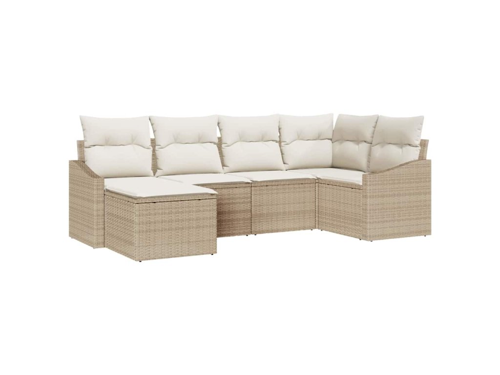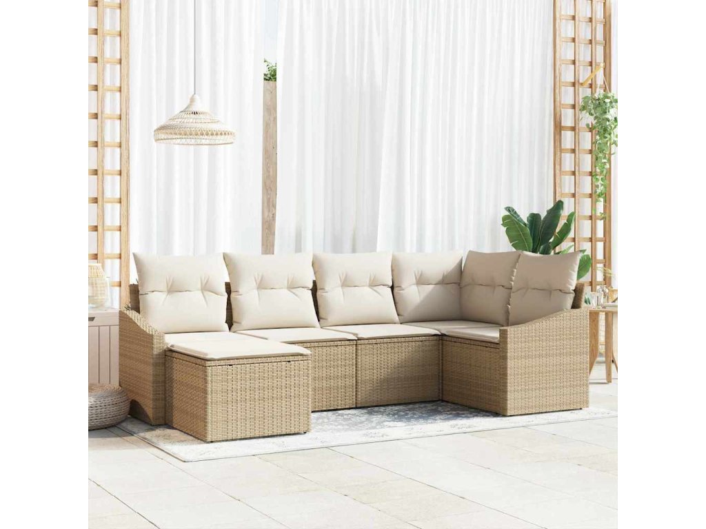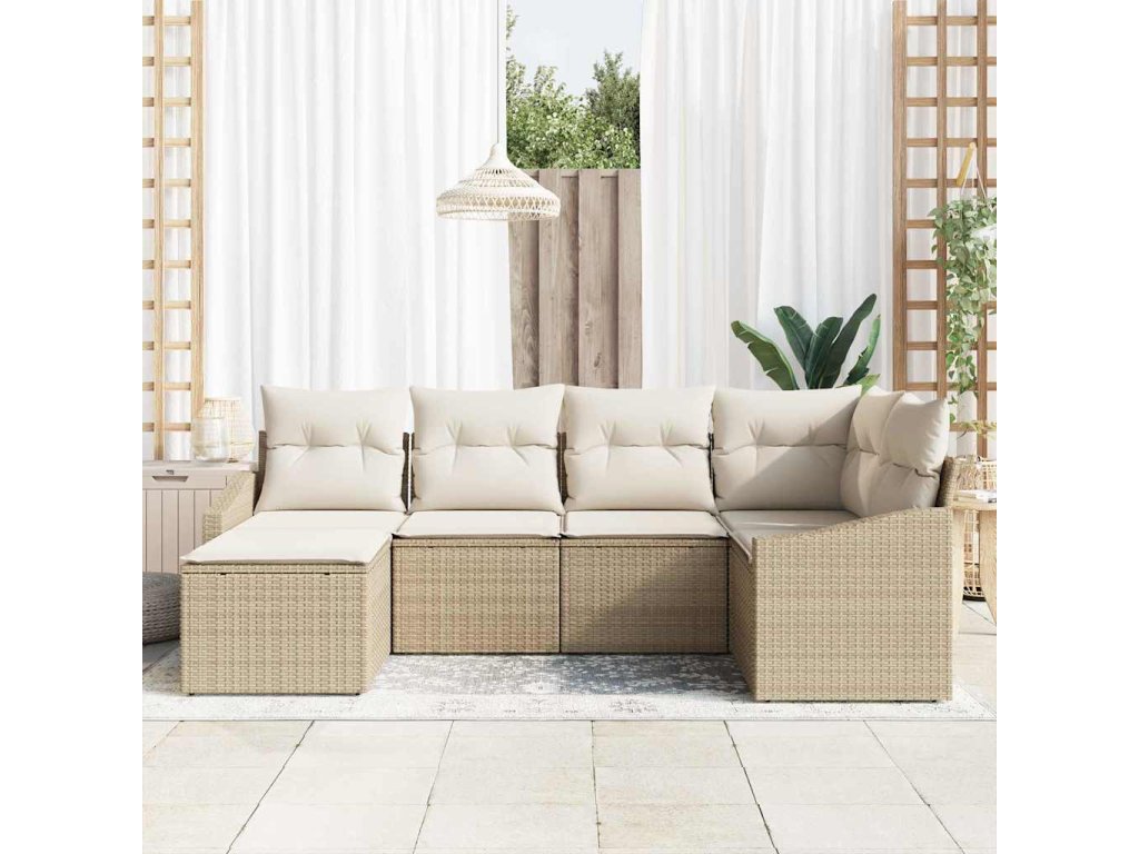 Tato sada venkovních rohových pohovek je skvělým přírůstkem do každé terasy nebo zahrady, spojující funkčnost s moderním vzhledem. Vyrobená z odolného béžového poly ratanu, skvěle zapadá do různých venkovních prostředí, poskytující pohodlné místo k odpočinku s rodinou a přáteli.