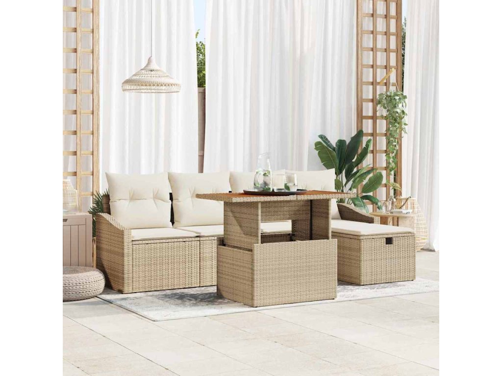 - Obsahuje komponenty: Kompletní set zahrnuje dvě centrální sedadla, dva pohodlný pohovky, taburet a zahradní stůl, všechny připravený na venkovní zábavu a rodinný čas. Všechny kousky do sebe skvěle zapadají a maximálně využívají váš prostor.