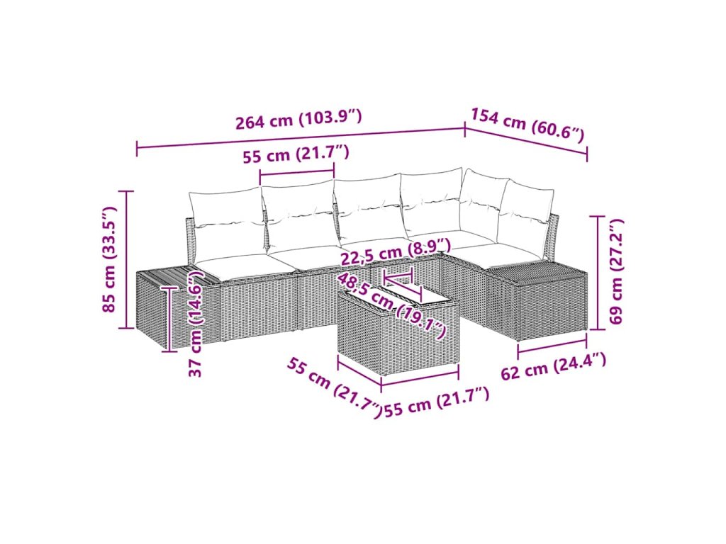- Prostorné sezení: Tento sofa set pohodlně vejde až pět lidí, ideální pro rodinná setkání nebo společenské akce, a vytváří příjemnou venkovní atmosféru.