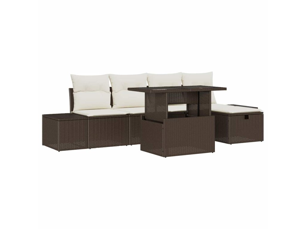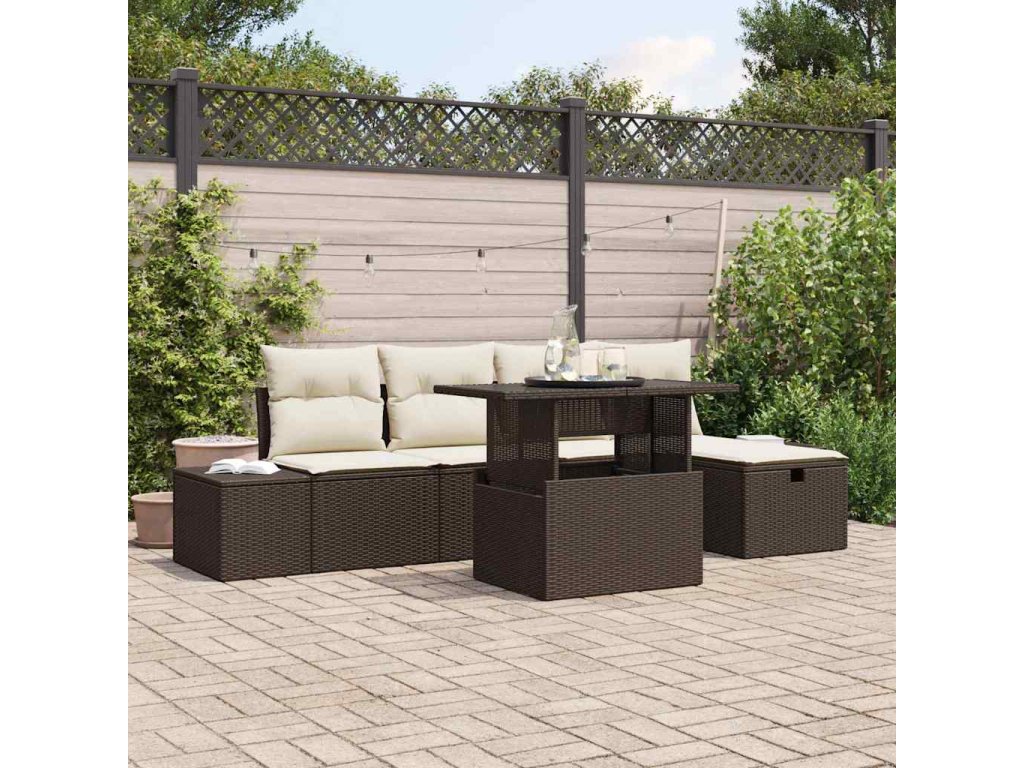 Ta zahradní sedací souprava má skvěle vyvážený styl a praktičnost, takže je to nutnost pro každé venkovní posezení. S nádherným hnědým polyratanem dodává moderní šmrnc a krémové polštáře zajišťují pohodlí – ideální pro slunečné dny nebo příjemné konverzace s kamarády.