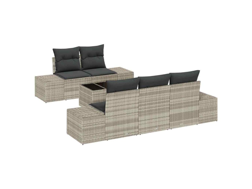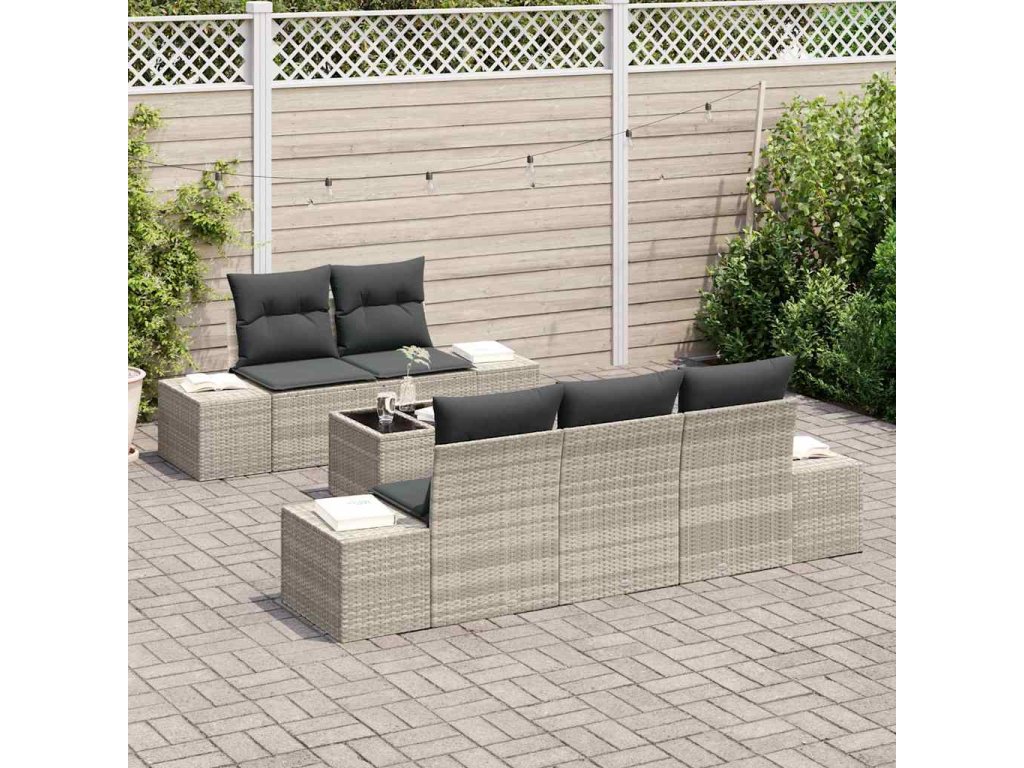 6dílná zahradní sedačka vidaXL ve světle šedé spojuje pohodlí a styl, takže je ideální volbou pro tvůj venkovní prostor. Vyrobená z odolného poly ratanu, nabízí spoustu místa pro více hostů, aby se pohodlně usadili během setkání, grilování nebo večerů pod hvězdami.