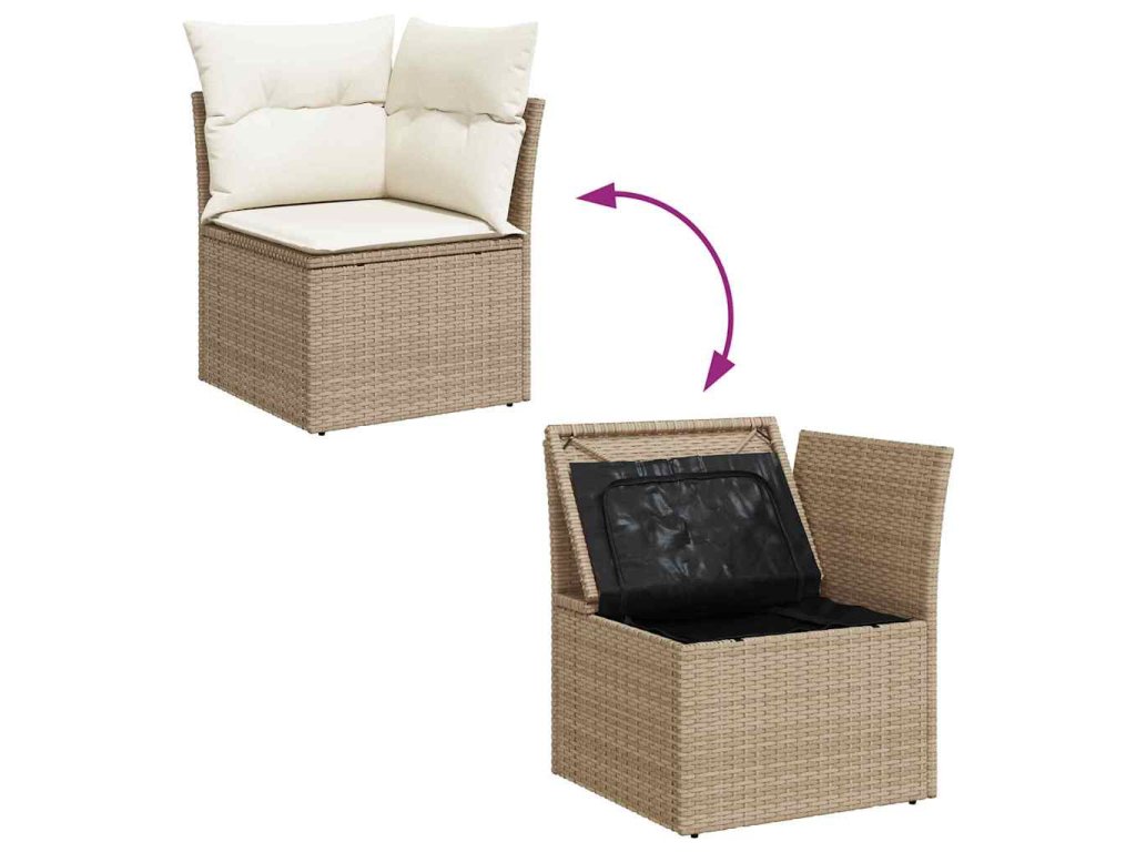 - 3 x středové sedačky se úložným prostorem a voděodolnými taškami, 1 x rohová sedačka s úložným prostorem a voděodolnou taškou, 2 x S pohovky s úložným prostorem a voděodolnými taškami, 1 x zahradní stůl