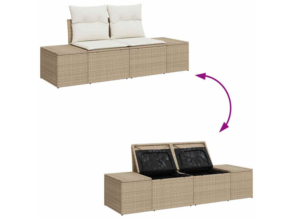 - Součásti: Set obsahuje dvě středové sedačky s nezbytným úložným a voděodolným vakem a čtyři pozvání couch, které také obsahují prostorné úložné prostory, čímž zajišťují, že venkovní nezbytnosti jsou uspořádány, ale snadno přístupné, když je potřeba. Elegantní zahradní stůl doplňuje tyto prvky a vytváří koherentní a funkční venkovní uspořádání.