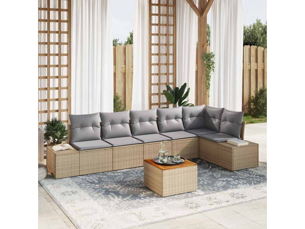 - Odolné materiály: Konstrukce z poly ratanu a masivního akáciového dřeva, tato zahradní sofa souprava je navržena tak, aby vydržela venkovní klimatické podmínky. Poly ratan poskytuje tkanou texturu, která zvyšuje estetickou přitažlivost, zatímco masivní akáciové dřevo dodává sílu a stabilitu. Práškově lakovaná ocel zajišťuje robustnost, což zaručuje, že souprava zůstává v perfektním stavu, odolává rzi a každodennímu opotřebení po několik sezon.