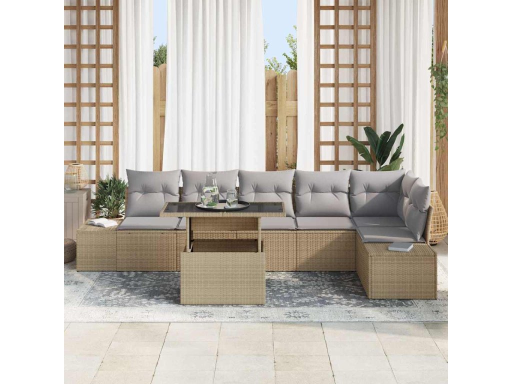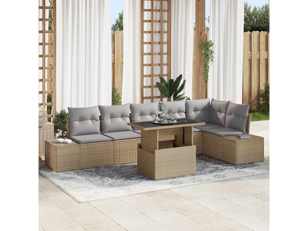 Tato 7dílná zahradní pohovka je perfektní pro venkovní lenošení. Je navržená pro různé venkovní prostory. Teplý vzhled a moderní styl ji činí ideální na večírky nebo jednoduše na trávení času na zahradě, terase nebo balkonu.