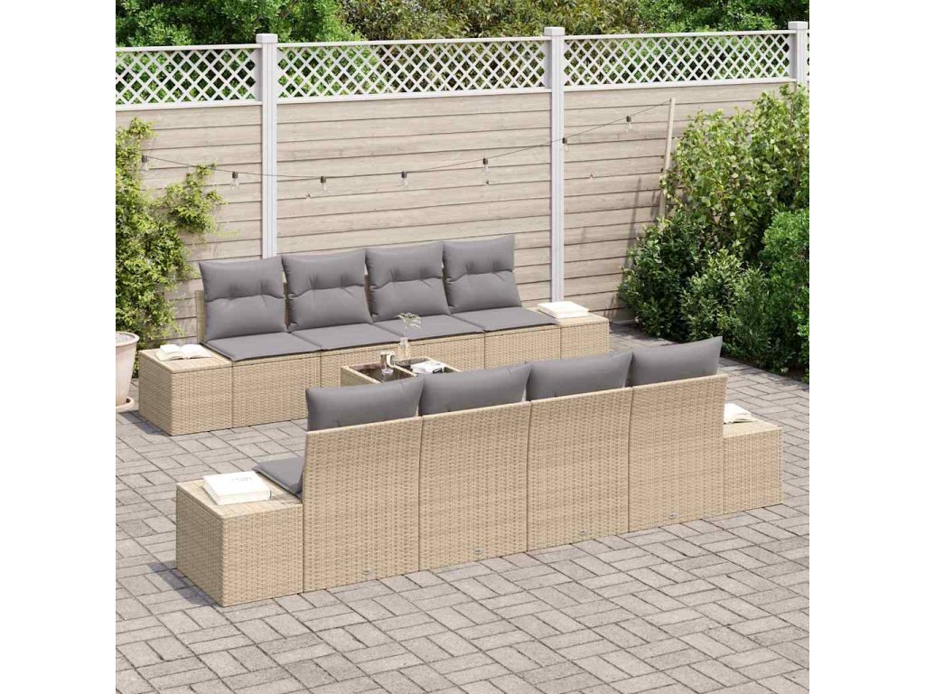 Tahle sada zahradních pohovek spojuje pohodlí a styl, takže ti pěkně vylepší venkovní prostor. S chic béžovým poly ratanovým rámem a pohodlnými šedými polštáři, je sezení pro až šest lidí – ideální na sešlosti, rodinné večeře, nebo jen tak na pohodu. Moderní design se hodí k jakékoli venkovní dekoraci. Využij tuhle flexibilní sadu k vytvoření úžasného posezení na svém balkoně nebo terase a ohrom své hosty jejím parádním vzhledem.