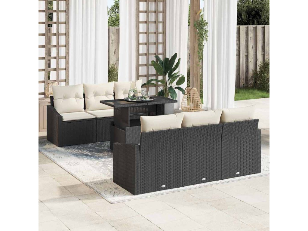 - Kompletní Set: Obsahující 2 středová sedadla, 4 pohovky s područkami a 1 stůl s průhledným skleněným povrchem, tento balíček nabízí vše potřebné k vytvoření koherentního a atraktivního zahradního uspořádání k sezení. Každý prvek se bezproblémově spojí, a tím umocní společné venkovní zážitky.