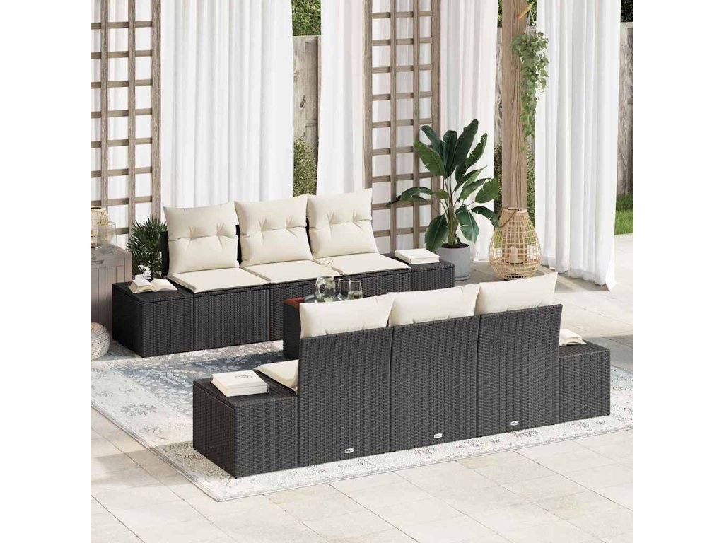 - Součásti: Sada obsahuje čtyři elegantní pohovky a centrální sedadlo s praktickým úložištěm a voděodolnými taškami, ideální na polštáře nebo venkovní drobnosti. Stylový stůl z akácie dokončuje celé sezení, ideální jako povrch na jídlo nebo vystavení tvých dekorací.
