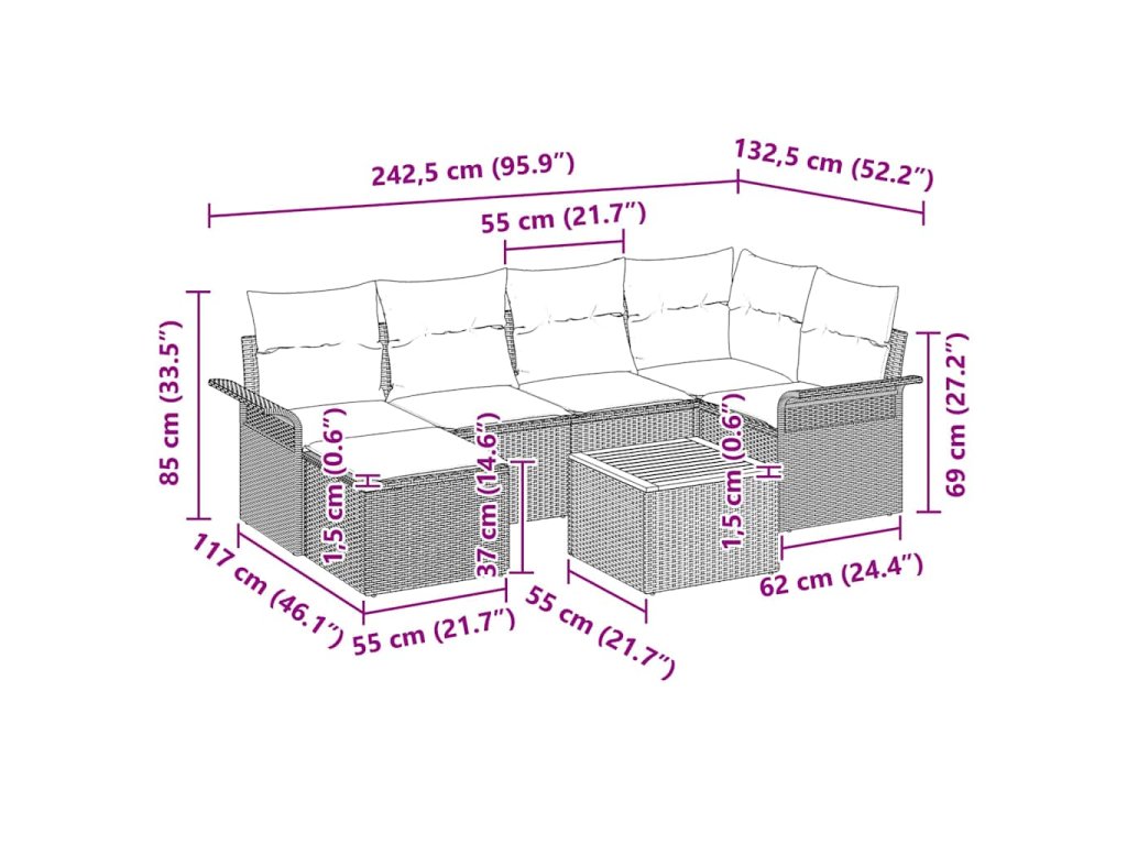 Tahle zahradní sedací souprava spojuje styl s funkcí, takže je skvělým doplňkem do každého venkovního prostoru. Její kompaktní rozměry znamenají, že se vejde skoro všude, od velkých zahrad po malé balkony, takže venkovní relaxace je vždy snadná a příjemná.