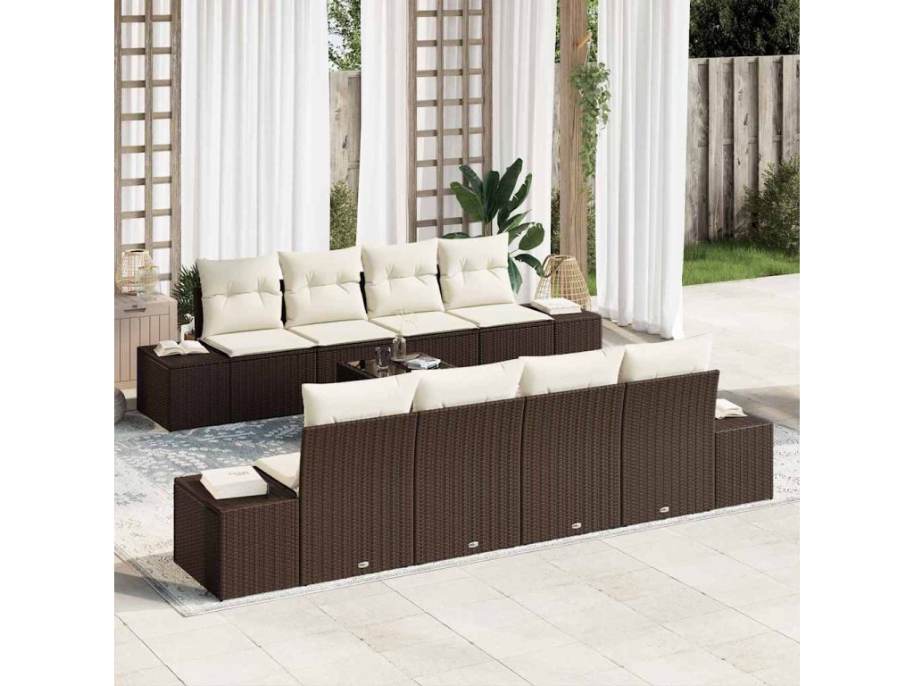 Tento zahradní sofa set přináší kombinaci pohodlí a stylu, skvěle oživí tvé venkovní prostory. Má hezký rám z polyratanu v hnědé a krémové barvě s dostatkem místa pro šest lidí. Ideální na setkání nebo relaxační večery. S tímhle flexibilním sofa setem si uděláš příjemné místo na balkoně nebo v zimní zahradě. Tvoji hosté budou nadšeni, jak to všechno skvěle vypadá.