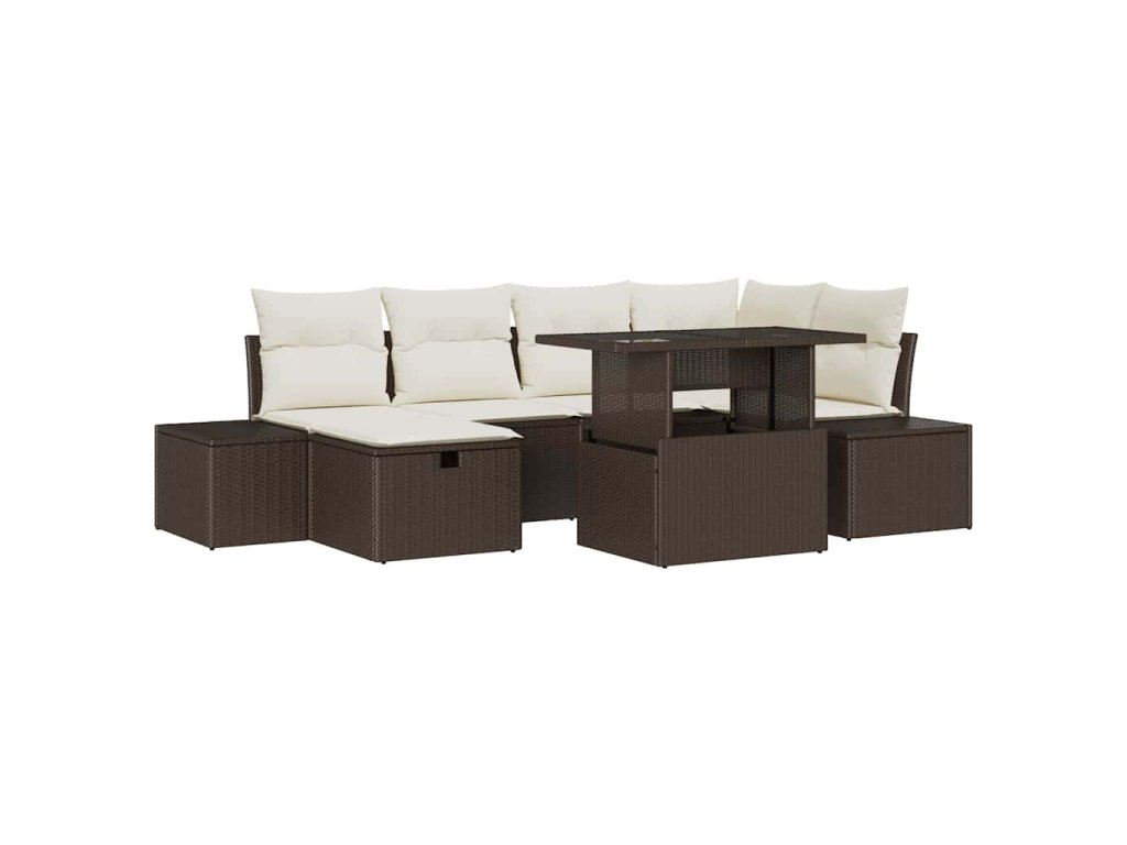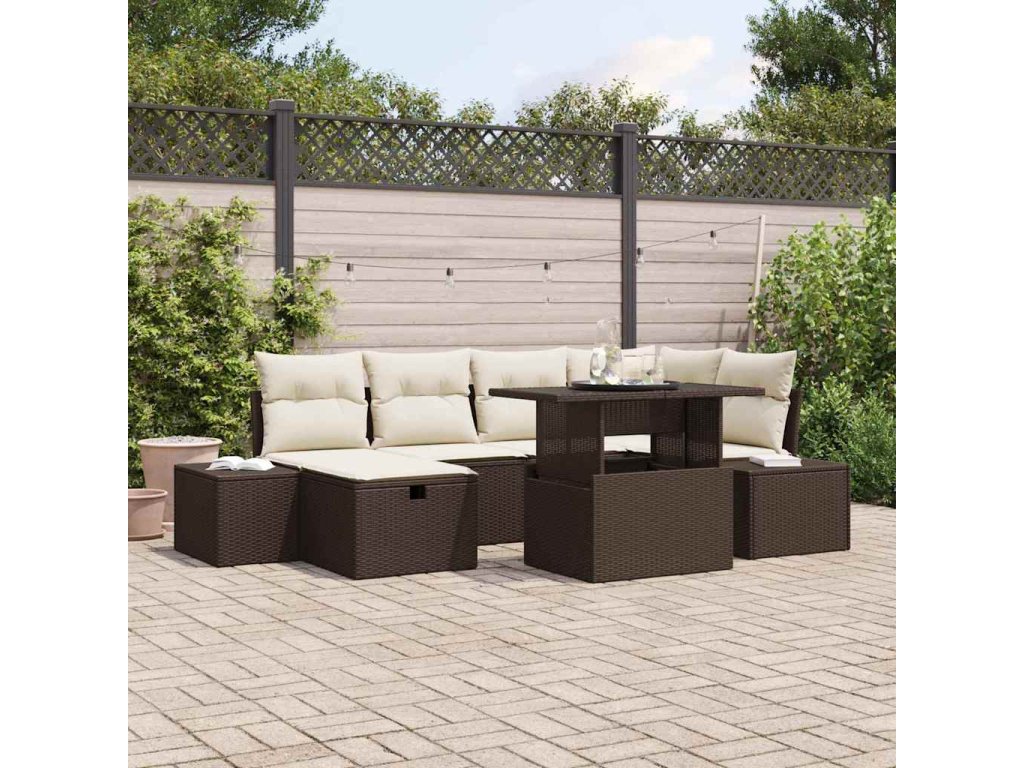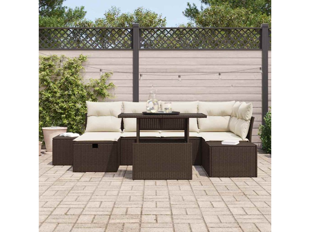 Tato 7-dílná zahradní pohovka je super volba, jak vylepšit venkovní styl a pohodlí. Chic hnědý rám s měkkými krémovými polštáři dělá každé zahradě nebo balkónu zajímavější. Perfektní na odpočinek nebo setkání s kámoši.