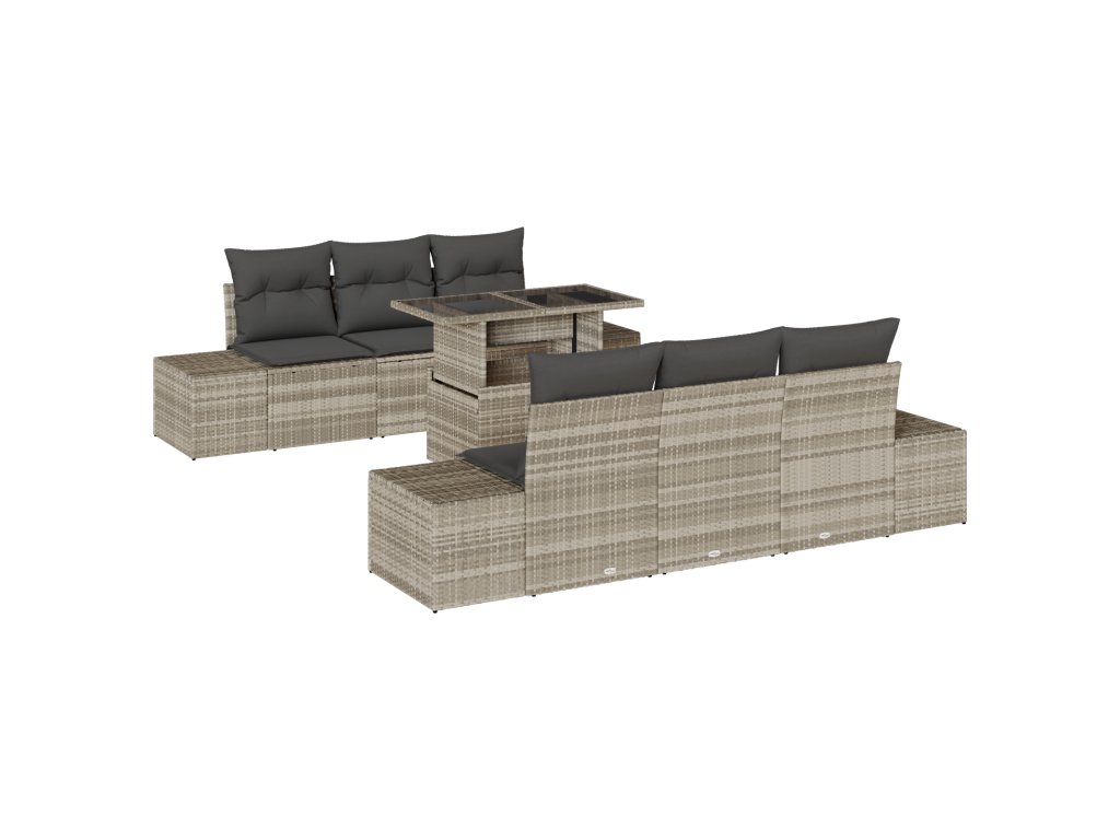Tato 7 kusová zahradní pohovková sada skvěle promění váš venkovní prostor na stylové místo pro odpočinek nebo trávení času s kamarády. Díky modernímu designu mixuje pohodlí a styl, takže je ideální pro balkon, terasu nebo zahradu. Navíc přidá příjemnou atmosféru, aniž by ztratila na praktičnosti.