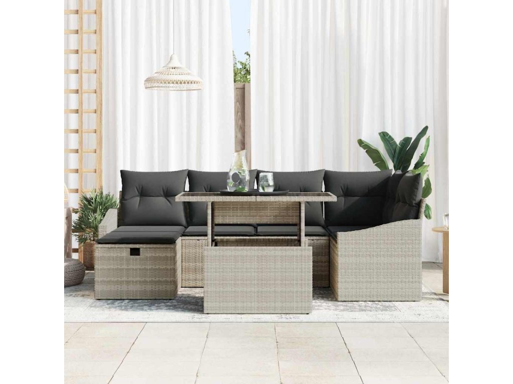 - Vysoce kvalitní poly ratan: Celá souprava je z odolného poly ratanu, což zajišťuje dlouhou životnost a styl. Odolává UV záření, takže i po celodenním slunci si zachová krásu. Textura materiálu dodává vizuální zajímavost a činí ho ideální volbou pro venkovní použití.