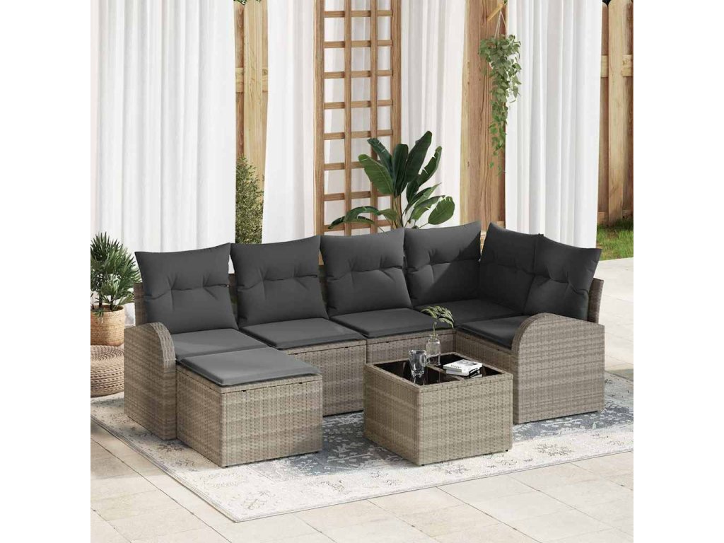 Tato zahradní pohovková souprava je dokonalou kombinací stylu a funkčnosti pro jakýkoli venkovní prostor. Pohodlně se do ní vejde až šest lidí a její moderní vzhled skvěle doladí každou terasu nebo zahradu. Elegantní linie a tkaná textura vytvářejí útulný prostor, ideální pro rodinné setkání nebo klidnou chvilku.