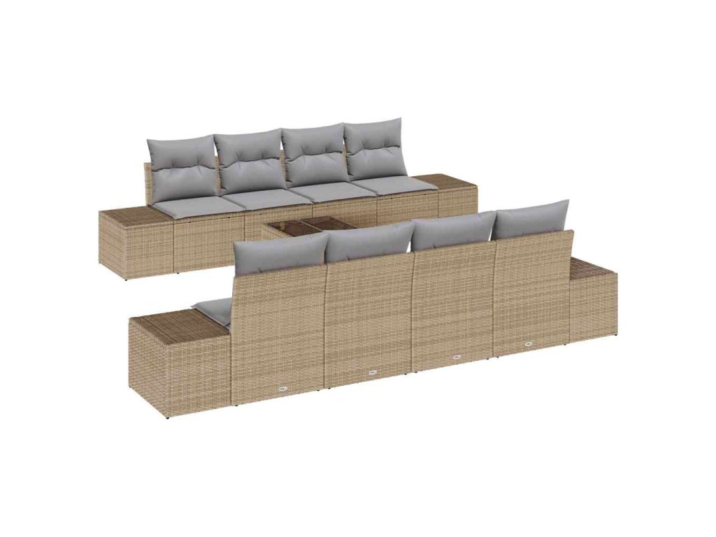 Tato venkovní sada pohovek spojuje styl a funkci, což ji dělá ideální pro zahrady a terasy. Elegantní černý syntetický ratan a pohodlné polštáře ti poskytnou spoustu místa pro relaxaci v teplých letních večerech.