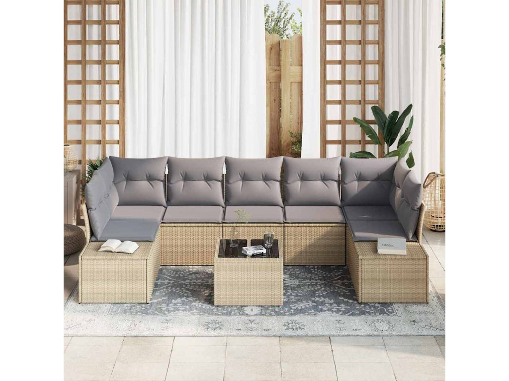 Tato zahradní sedací souprava spojuje eleganci a pohodlí, skvěle se hodí k venkovnímu lenošení nebo odpočinku ve zimní zahradě. V neutrální béžové a šedé barvě poskytuje flexibilní sezení pro až sedm lidí - ideální pro rodinná setkání. Její elegantní vzhled a prostornost vytvářejí příjemnou atmosféru, zatímco voděodolné materiály zajišťují, že bude vždy vypadat skvěle. Ať už plánujete živé brunch nebo klidné večery, tato sedací souprava je ideálním centrem pro každý venkovní prostor.