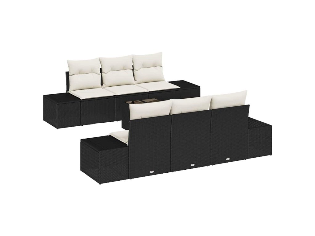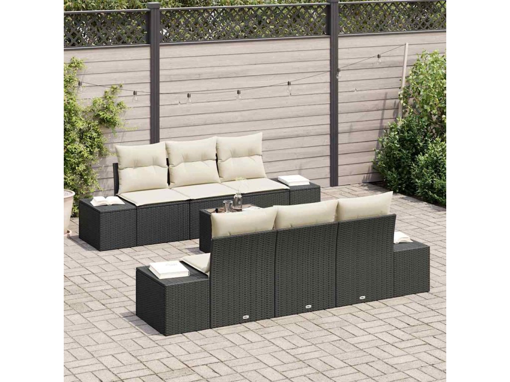 Tato 7dílná sedací souprava na zahradu kombinuje styl a praktičnost, takže nabízí pohodlné venkovní místo k sezení. Je jako stvořená pro relaxaci nebo klidný večer. Vyrobená z odolného černého polyratanu, poskytuje útulné bílé polštáře, které neudělají jen parádu, ale taky ti zajistí pohodlí, ať už relaxuješ u bazénu nebo se sluníš na zahradě.