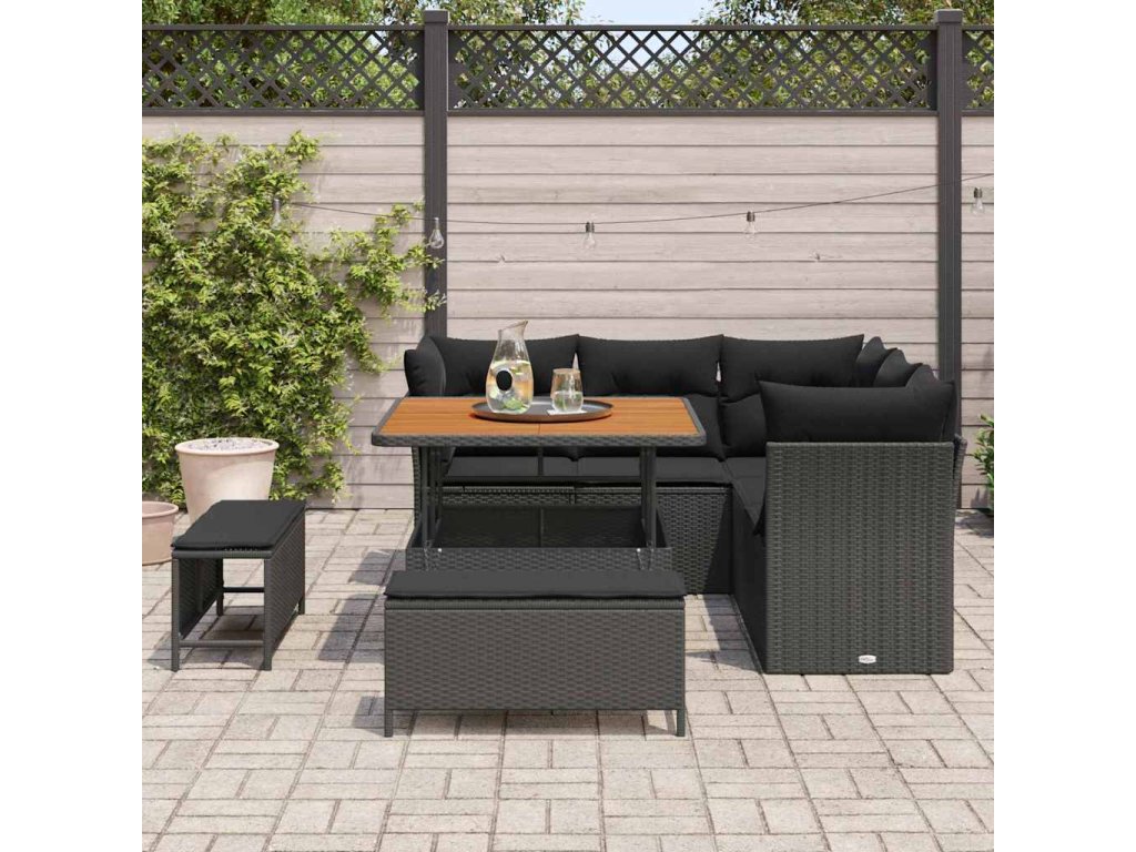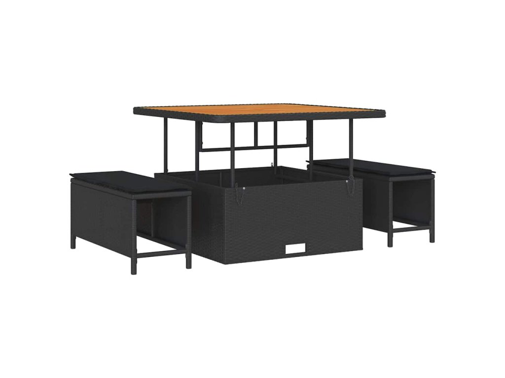 Tato zahradní sada nábytku spojuje moderní jednoduchost s praktičností, což dodává šmrnc tvému venkovnímu prostoru. Je připravená na jakékoliv počasí, kombinuje lesklý ocelový rám s krásou akáciového dřeva a odolného poly ratanu. Čisté linie a jednoduchý styl jí dodávají šmrnc a zajišťují, že je pohodlná. Ideální pro zahrady, terasy nebo patia, tahle sada je skvělá pro lenošení během letních dnů nebo setkání s přáteli, poskytuje dostatek místa k sezení a příjemnou atmosféru.