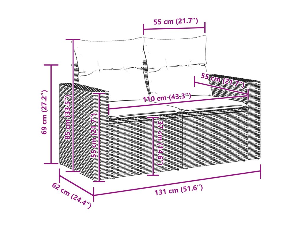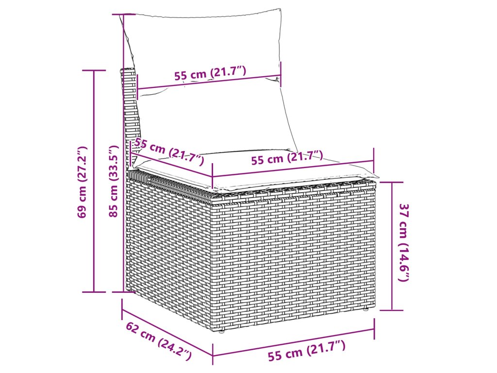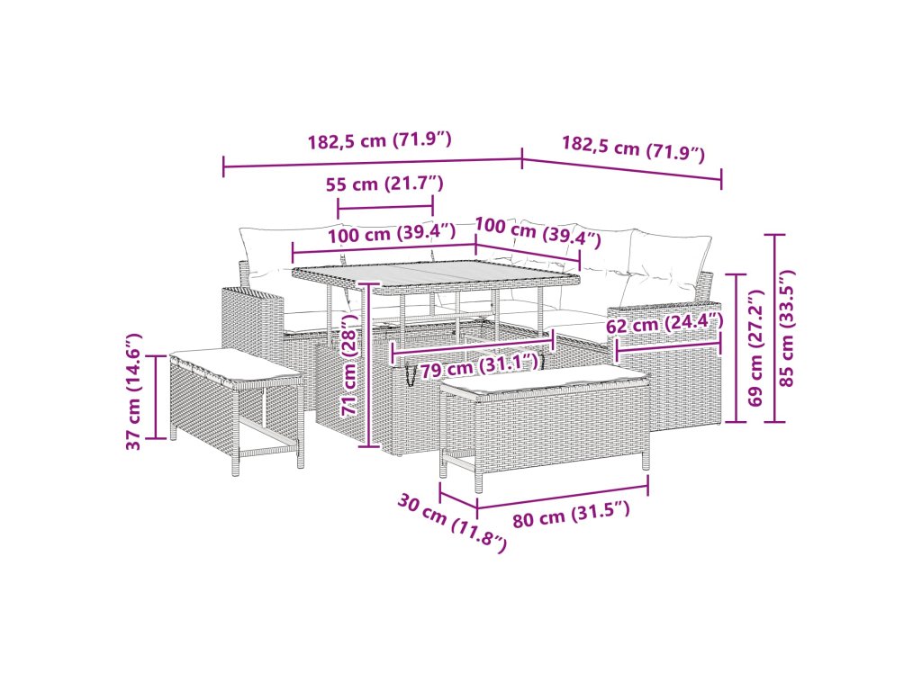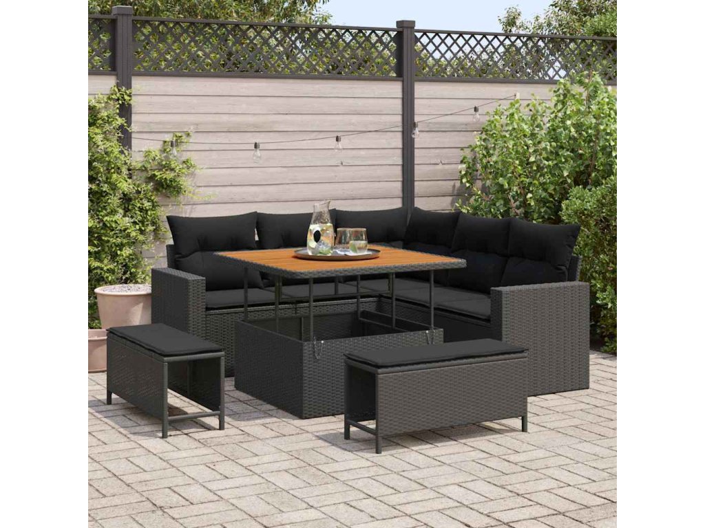 - Materiál Poly Ratan: Vyrobený z odolného poly ratanu, tento moderní pohovkový set přináší elegantní a zároveň odolné vlastnosti, které zajišťují, že odolává venkovním elementům. Tkaná textura nabízí hmatatelný povrch, který zvyšuje estetickou přitažlivost tvé zahrady nebo terasy.