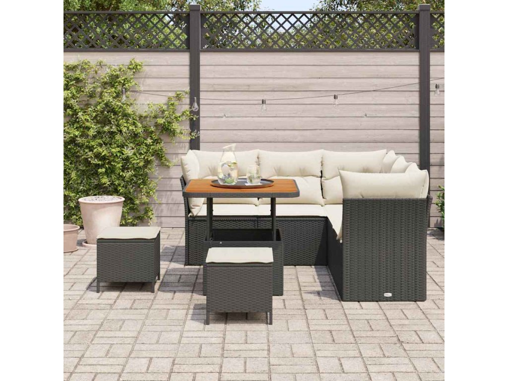 - Odolná konstrukce Zahradní pohovkový set je vyroben z silných materiálů, takže vydrží. Ocelový rám s práškovým nátěrem zajišťuje odolnost i za drsných podmínek. Spolu s UV-odolným poly ratanem zůstává krásný a neskládá se.