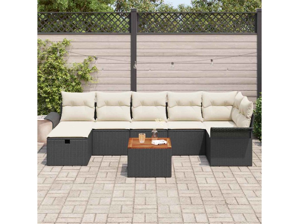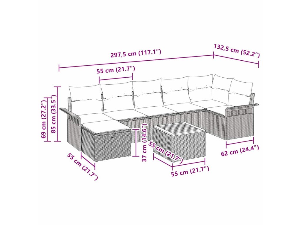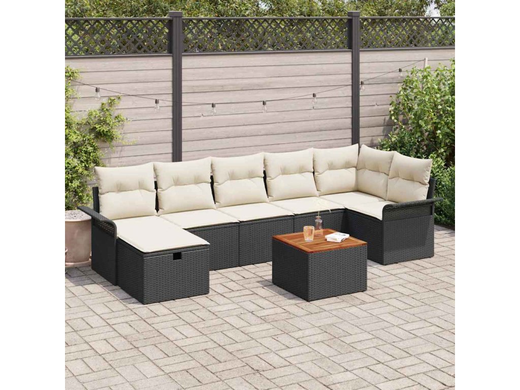 Tahle 8 dílná zahradní pohovková souprava s polštáři se zaměřuje na styl a funkčnost, nabízí spoustu místa pro sezení až pro sedm lidí. Moderní design s robustním ocelovým rámem a kvalitním poly ratanem dělá z každého balkonu nebo terasy super místo na relaxaci.