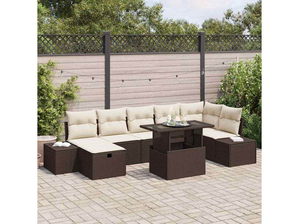 - Prémiové materiály: Tato zahradní sedací souprava kombinuje moderní estetiku poly ratanového tkaní s pevností ocelového rámu. Každý materiál byl vybrán pro svou odolnost a odolnost proti opotřebení, což zajišťuje, že vaše souprava zvládne slunce i déšť a přitom si zachová svůj vizuální půvab napříč sezónami.