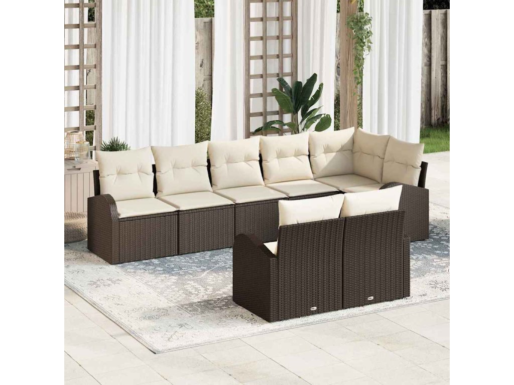 Tato venkovní sekční pohovka změní váš balkon nebo terasu na skvělý relaxační prostor. Je pohodlná a perfektní na setkání nebo klidné večery. S moderním hnědým poly ratanem a měkkými krémovými polštáři tento stylový kousek přináší nejen sezení, ale také oživuje jakoukoli venkovní oblast, což dělá z této pohovky skvělou volbu pro rodinu a přátele.