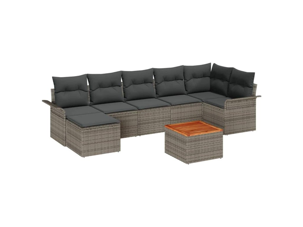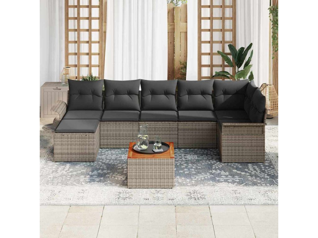 Tato sada venkovních pohovek ti zpříjemní čas lenošení a zároveň dobře vypadá v tvé zahradě nebo na terase. Moderní design s šedým poly ratanem a tmavými polštáři vytvoří pohodovou atmosféru, ideální na odpočinek s rodinou a kamarády nebo na klidné odpoledne venku.