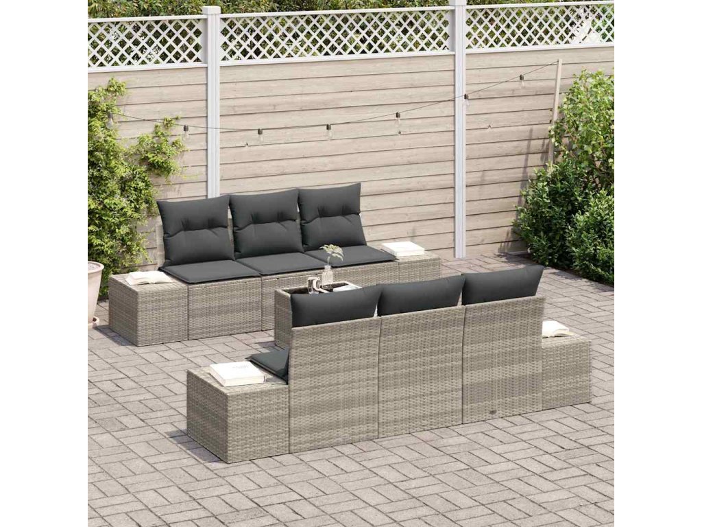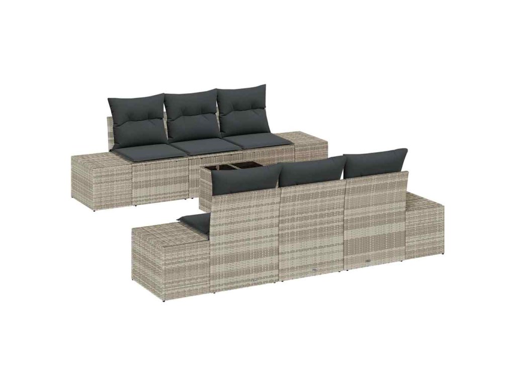 Tato zahradní pohovková sada se zaměřuje na styl a pohodlí pro venkovní použití. Je ideální na pohodové setkání nebo zábavu s přáteli a rodinou. Moderní design ve světle šedé a tmavě šedé se skvěle hodí do jakéhokoli konceptu venkovní oblasti, posílí atmosféru a nabídne pohodlné sezení pro až šest osob, včetně měkkých polštářů.
