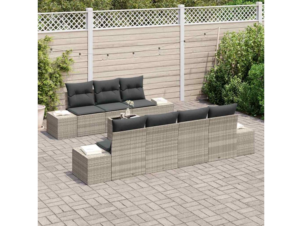 - Dostatečná kapacita sezení: Tato pohovková sada snadno usadí až 8 osob, což ji dělá skvělou pro větší setkání, grilování nebo rodinné akce. Promění tvou venkovní plochu na rušný společenský prostor.