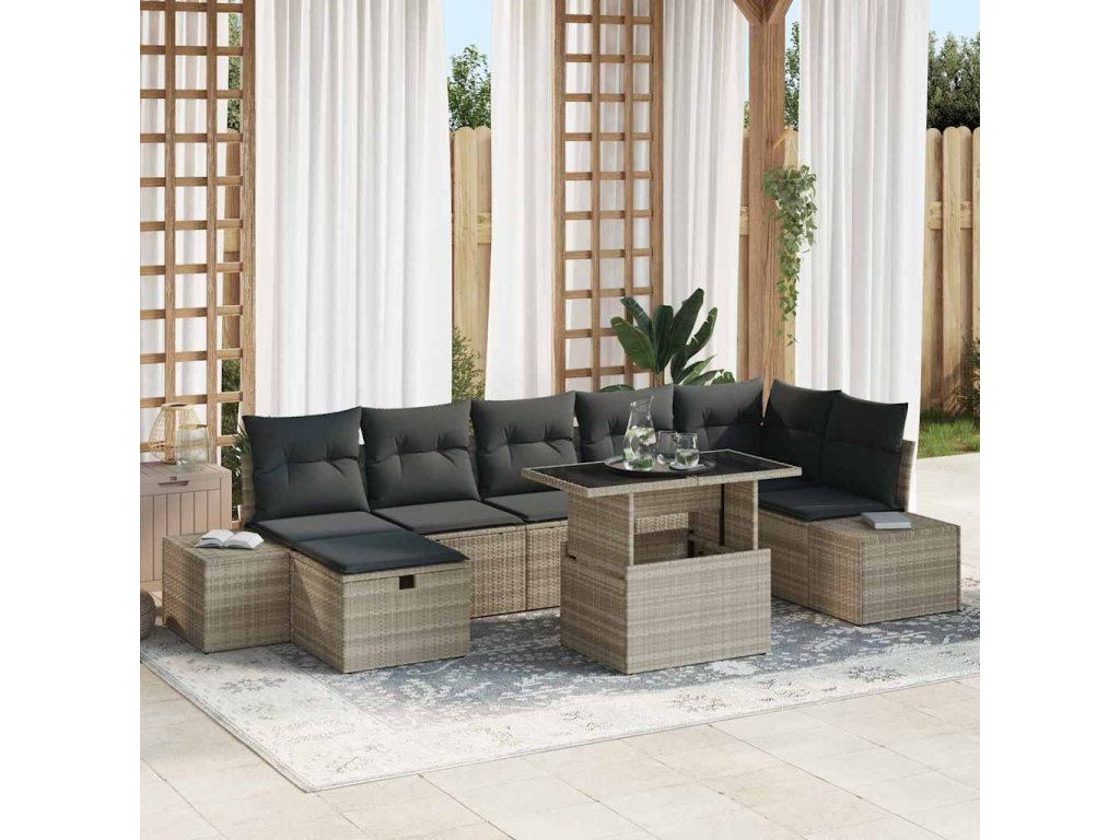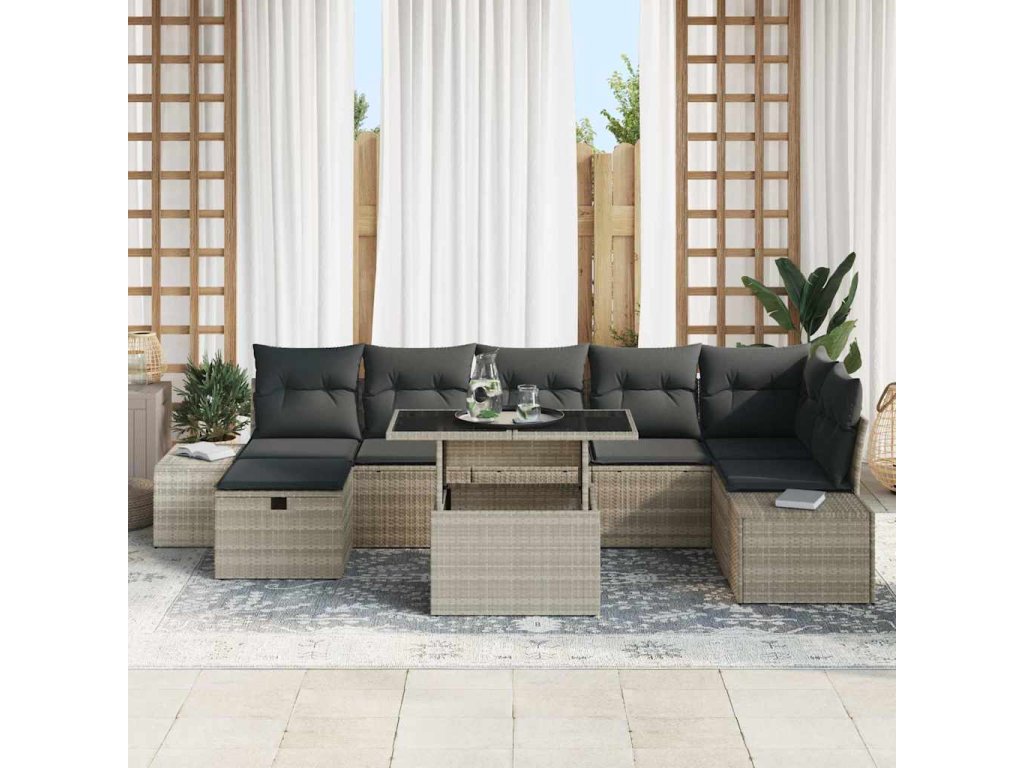 - Jedinečné funkce: Set je navržen s uložnými prostory v lavicích, takže můžeš ukládat polštáře nebo deky a mít je po ruce, ale mimo dohled. UV-odolné materiály zabraňují opotřebení a pomáhají udržet vzhled. Čelí jak estetice, tak i praktičnosti, takže si vždy užiješ pohodu.