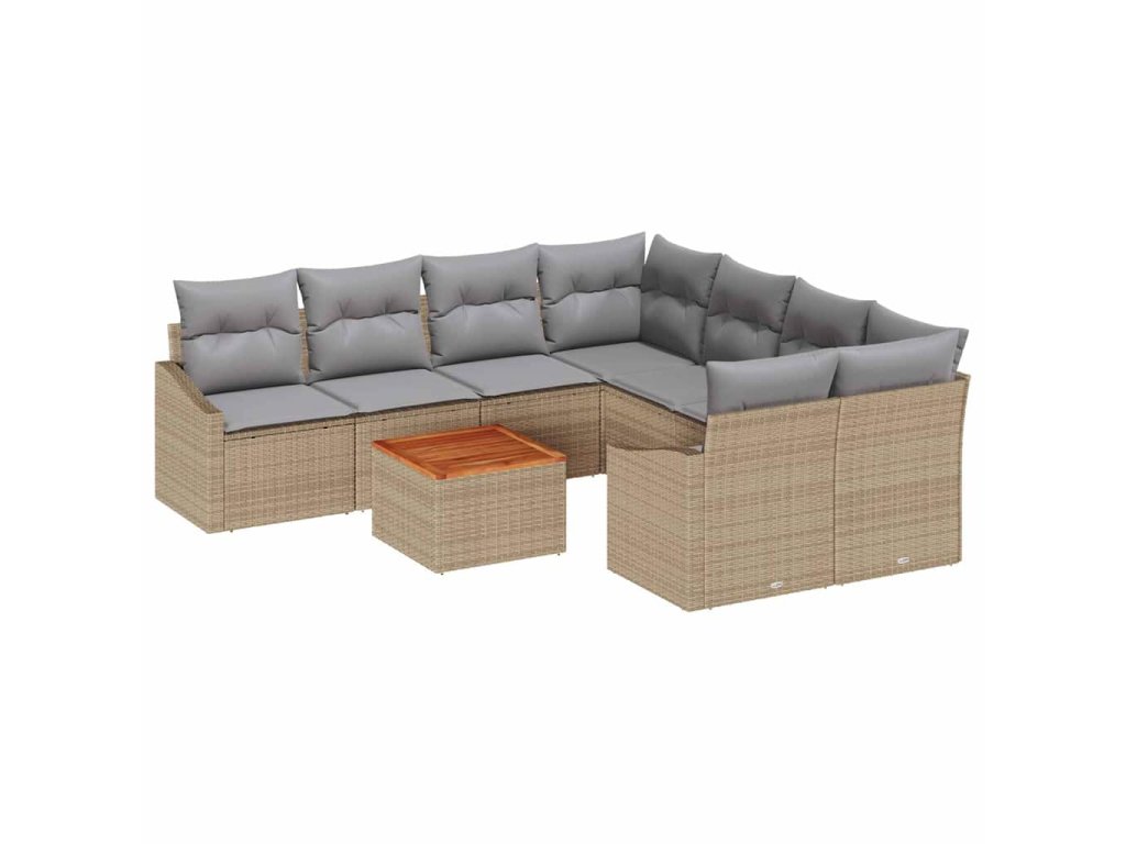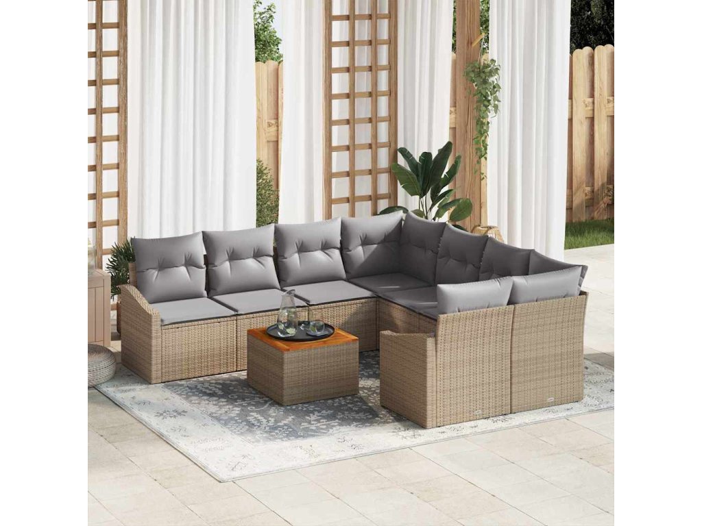 - Funkční stůl: Zahradní stůl je potažen pevným akáciovým dřevem, což dodává přírodní eleganci, která doplňuje sedací soupravy. Tento povrch je ideální pro držení osvěžení nebo dekorací, což činí vaše venkovní setkání plynulými a příjemnými.