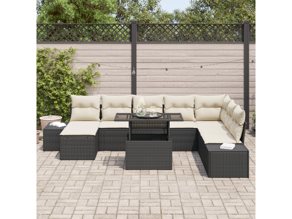 9dílný modulární zahradní gauč je super stylový a praktický, což ho činí ideálním pro tvé venkovní sezení. Jeho moderní design je plný báječných textur a trendy barev, takže skvěle zapadne do přírody a vytvoří ti příjemné místo k relaxaci nebo zábavě.