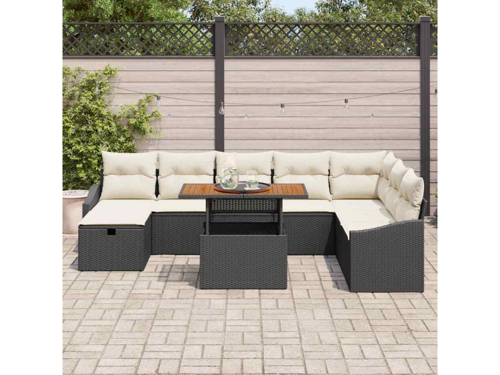 - Stylový vzhled: Elegance černého poly ratanu a krémových polštářů dodává příjemný vzhled, který se skvěle hodí do vašeho venkovního prostoru. Jeho moderní design se hodí k různým stylům dekora, čímž podpoří atmosféru vaší zahrady.
