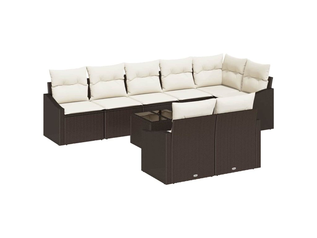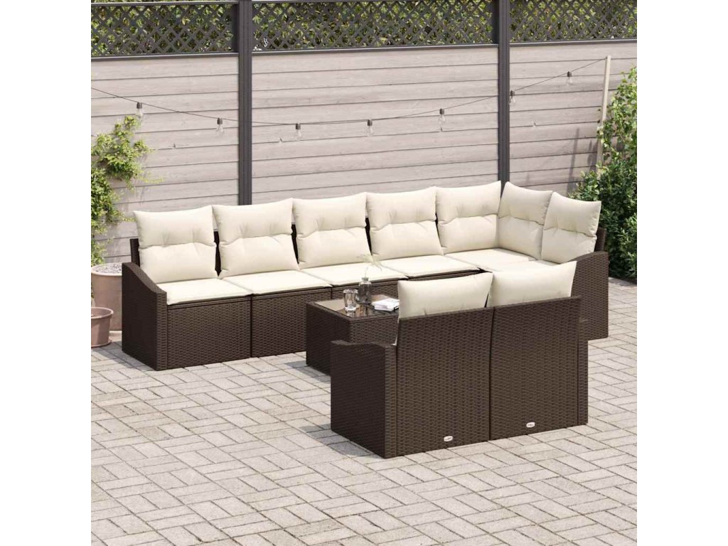 Tento úžasný zahradní jídelní set je ideální pro venkovní prostory, jako balkon nebo zahradu. S krásným designem v teplých krémových a hnědých barvách se pohodlně usadí až osm osob – ideální pro společenské akce nebo rodinné večeře venku.
