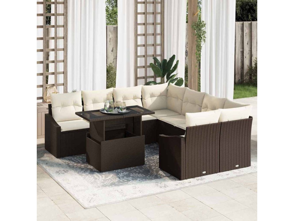 Tahle venkovní pohovka pro osm osob je navržená tak, aby vylepšila atmosféru tvé zahrady nebo terasy, zůstává pohodlná a stylová. S krásným hnědým poly ratanem, co sedí do každého venkovního prostoru, vytváří útulné místo na teplé večery s přáteli nebo rodinou.